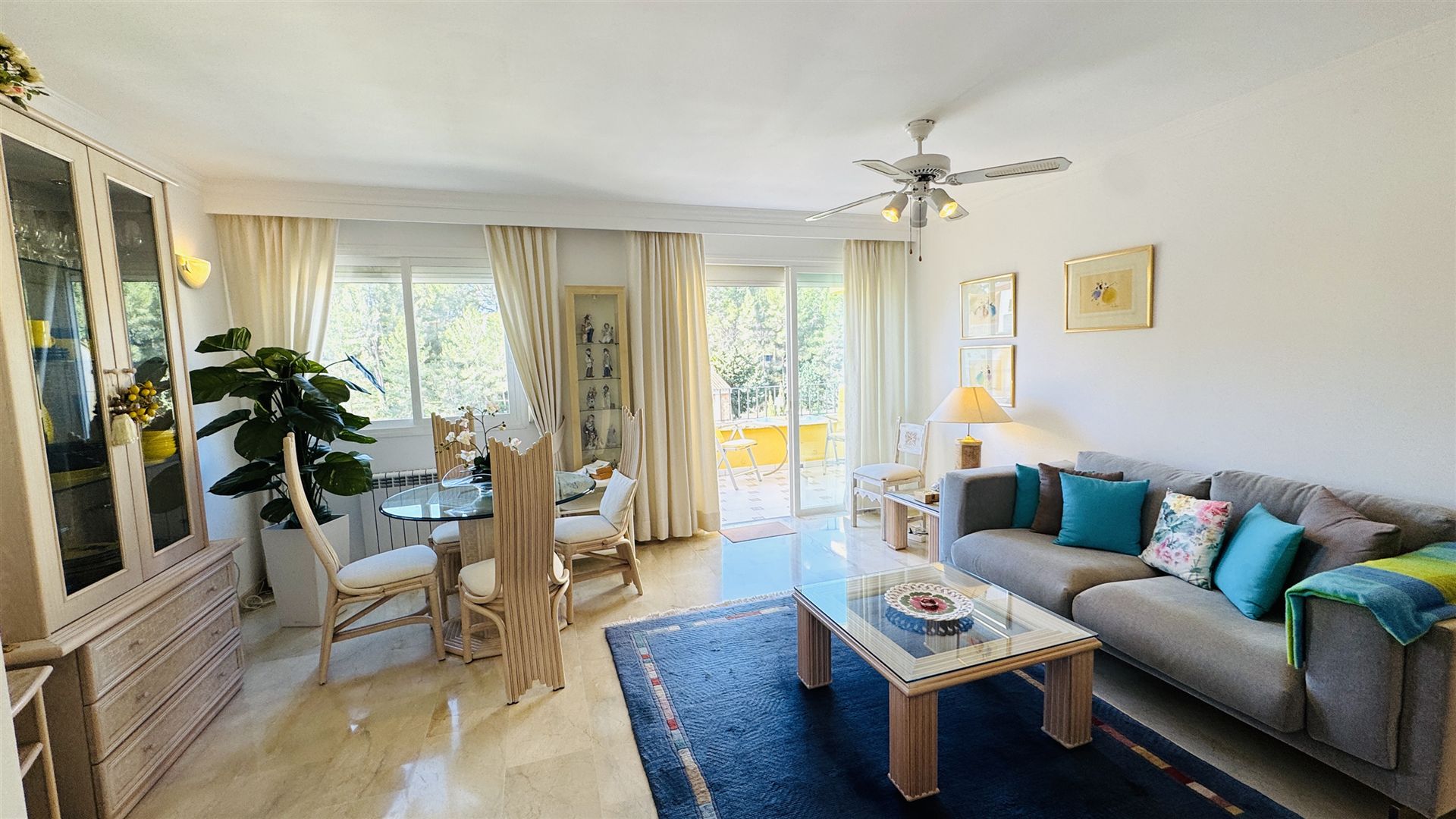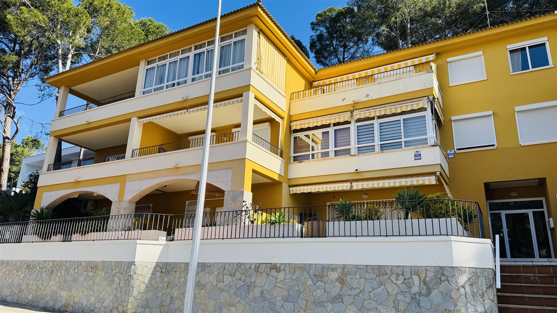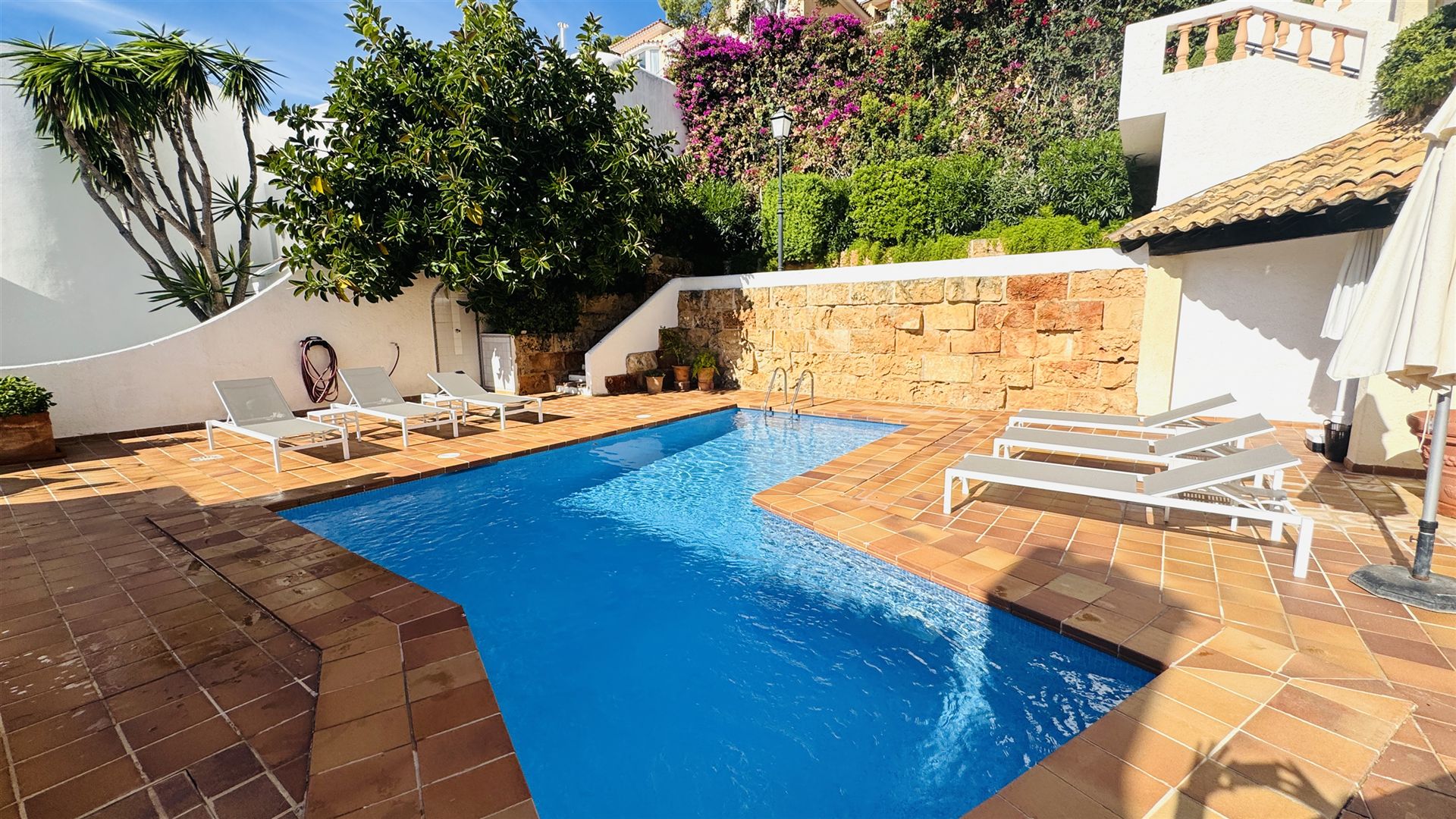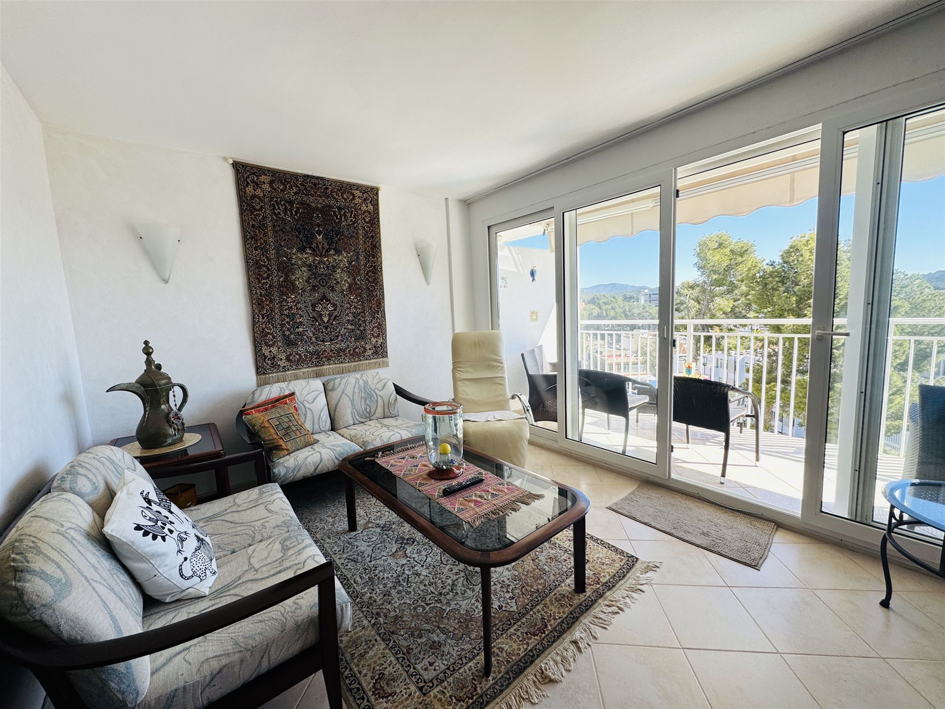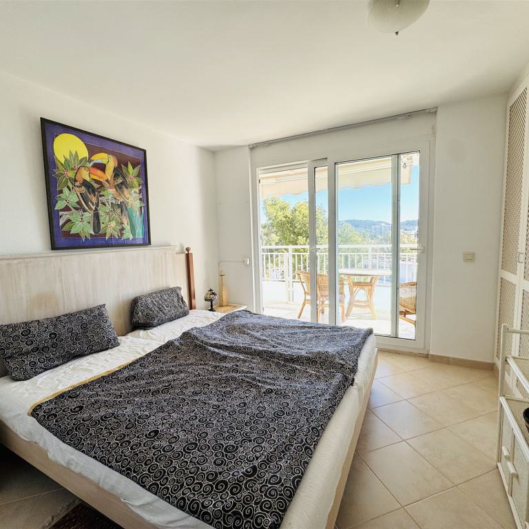großzügiges top renoviertes Duplex Appartment mit Meer u. Panoramablick, 186 qm bebaute Fläche, 3 SZ, 2 moderne Duschbäder, gr. offener Wohn-Essbereich mit Kamin, offene weiße Einbauküche, Abstellraum, Klima, Infrarotheizung, Doppelverglasung, Privatparkplatz plus Stellplatz, G-Pool, großzügige teilweise überdachte Terrassen, wird komplett möbliert angeboten