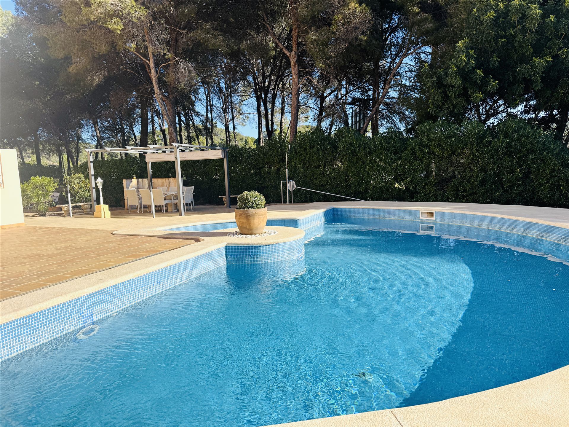 sehr schönes mediterranes Appartment mit 118 qm, 3 SZ, 2 B (1 davon en suite), geräumiges Wohnzimmer, gemütliche Wohnküche mit Sitzecke, angrenzender Wirtschaftsraum, sonnige Rundumterrasse, GPool, Aufzug, Gaszentralheizung, Doppelverglasung, wird möbliert angeboten, privater Stellplatz, fußläufig zum Boulevard u. den Stränden