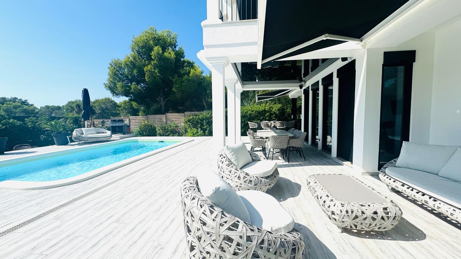 top renovierte Villa in ruhiger Lage mit Teilmeerblick, 1035 qm Grundstück, 300 qm Wohnfl., auf 3 Ebenen befinden sich 4 Schlafzimmer. 3 Bäder, gr. offener Wohn-Essbereich, offene moderne Einbauküche, Klima k/w, Ölzentralheizung, Warmwasser über Solar, Pool, Garage, Stellplätze, 2023 komplett saniert mit hochwertigen Materialien, BBQ Bereich, Spa mit Sauna