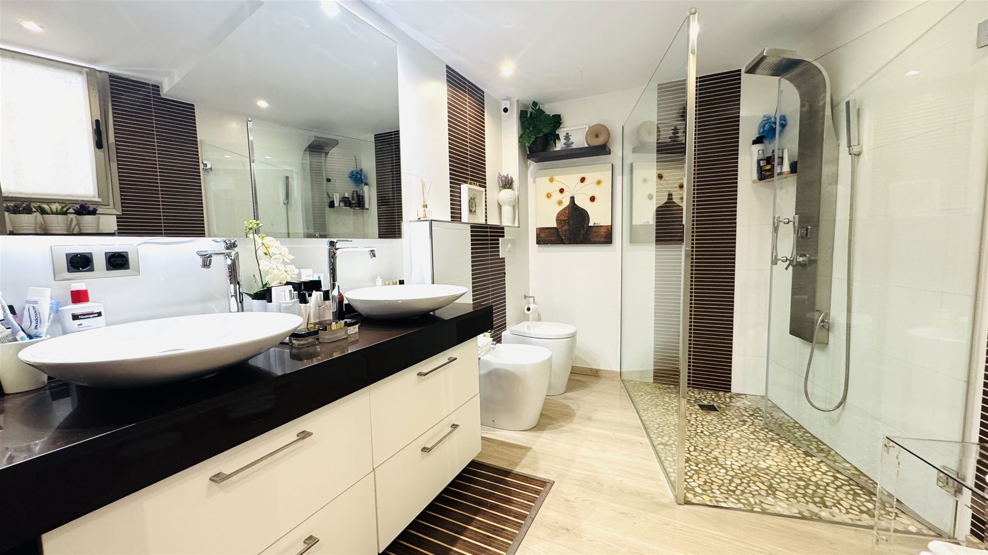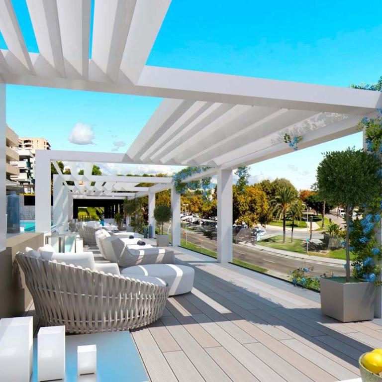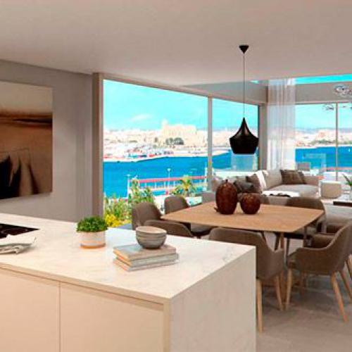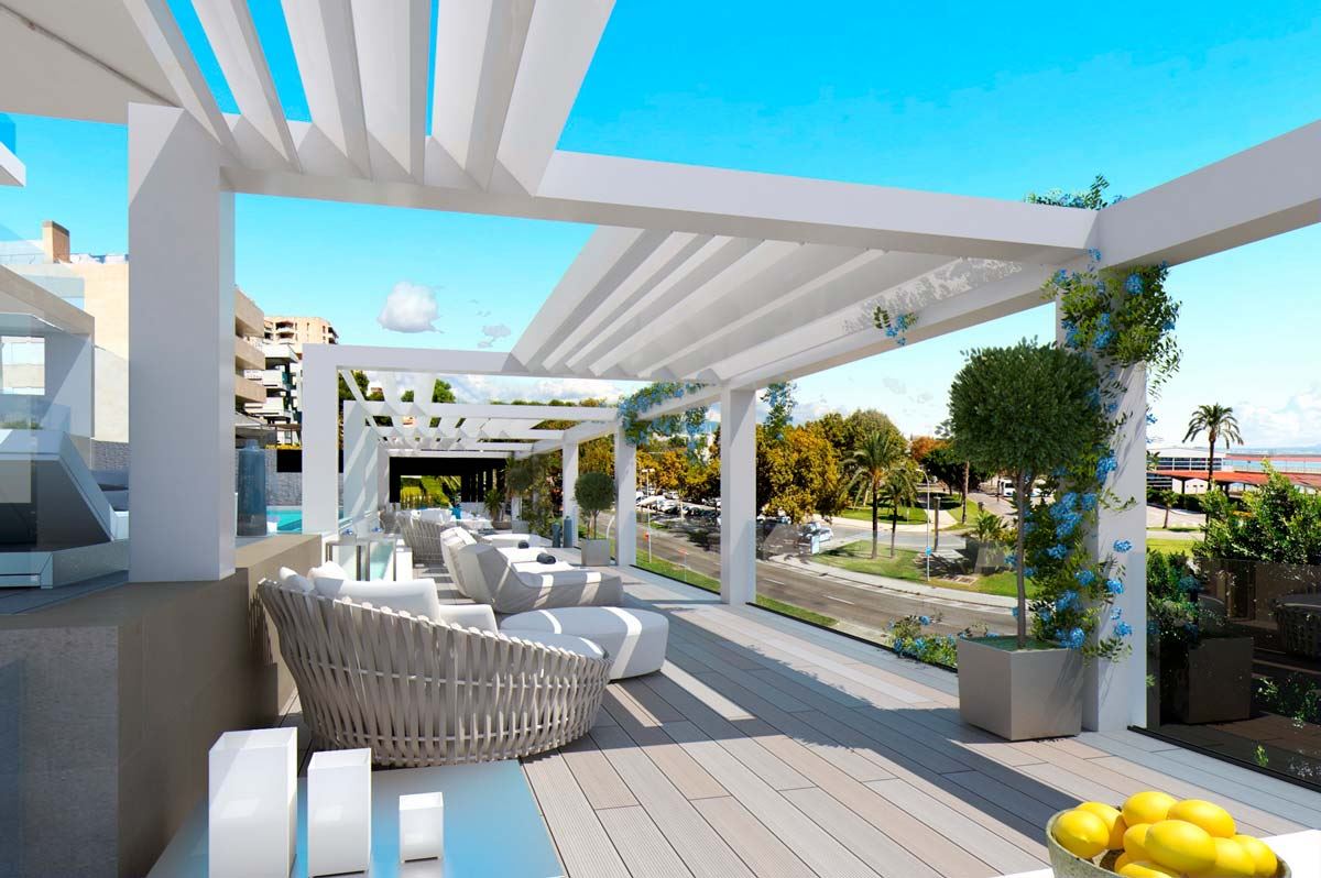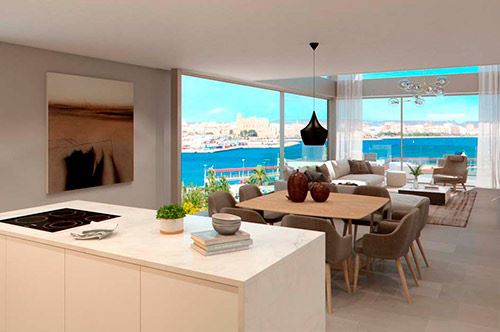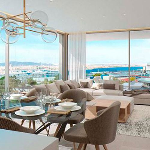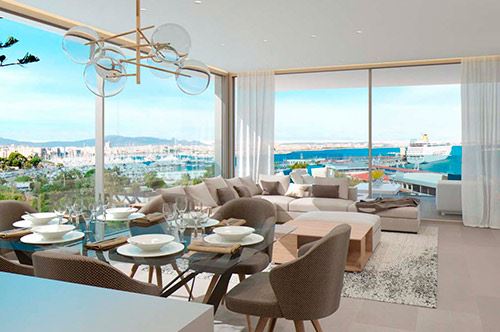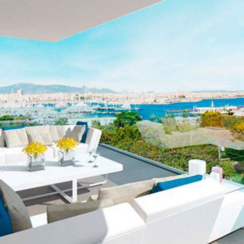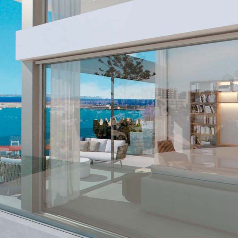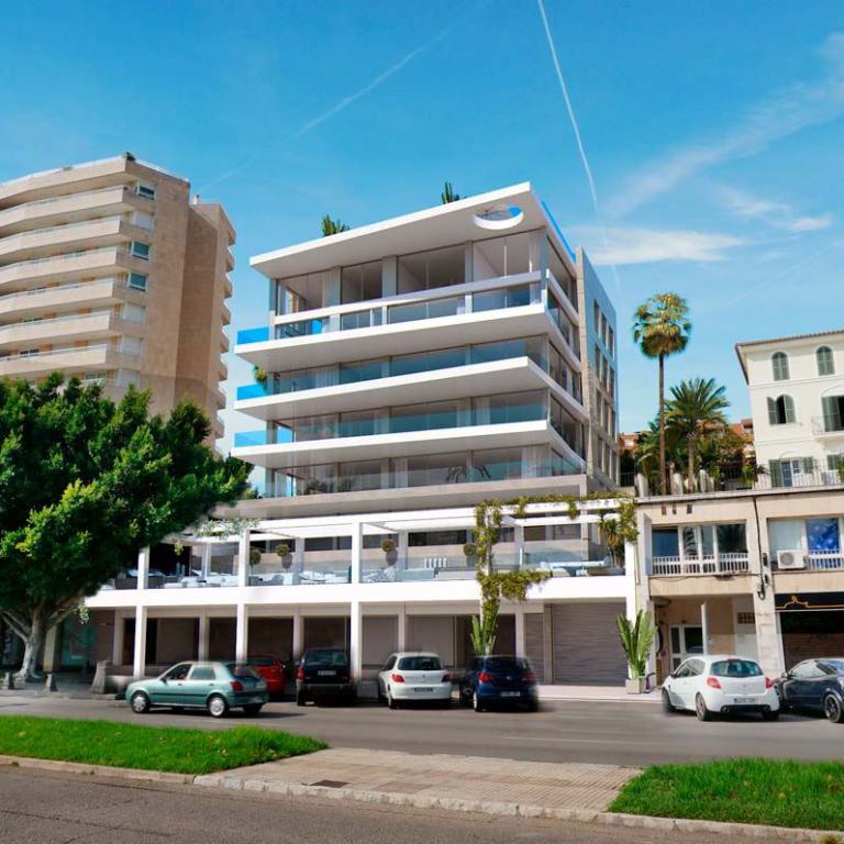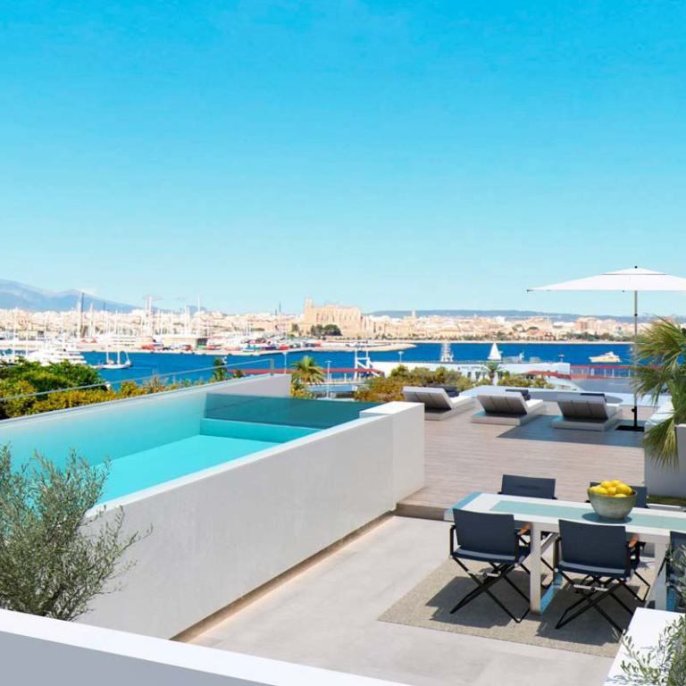 einzigartige Appartements und Penthäuser ( im Bau befindlich) am Paseo Maritimo gelegen, diese hochwertig ausgestattenen Immobilien werden angeboten mit 1- 4 SZ , von 105,84 qm bis 293,57 qm bebaute Fläche, moderne Bäder, moderne weiße Einbauküche ( von Nolte), Wohn-Esszimmer, inkl. 1 Stellplatz, beheizb. G-Pool, Sauna plus Dampfsaune, Vorinstallation für Alarm und Musikanlage, Abstellraum, Waschküche, absolut traumhafter Blick über den Hafen von Palma