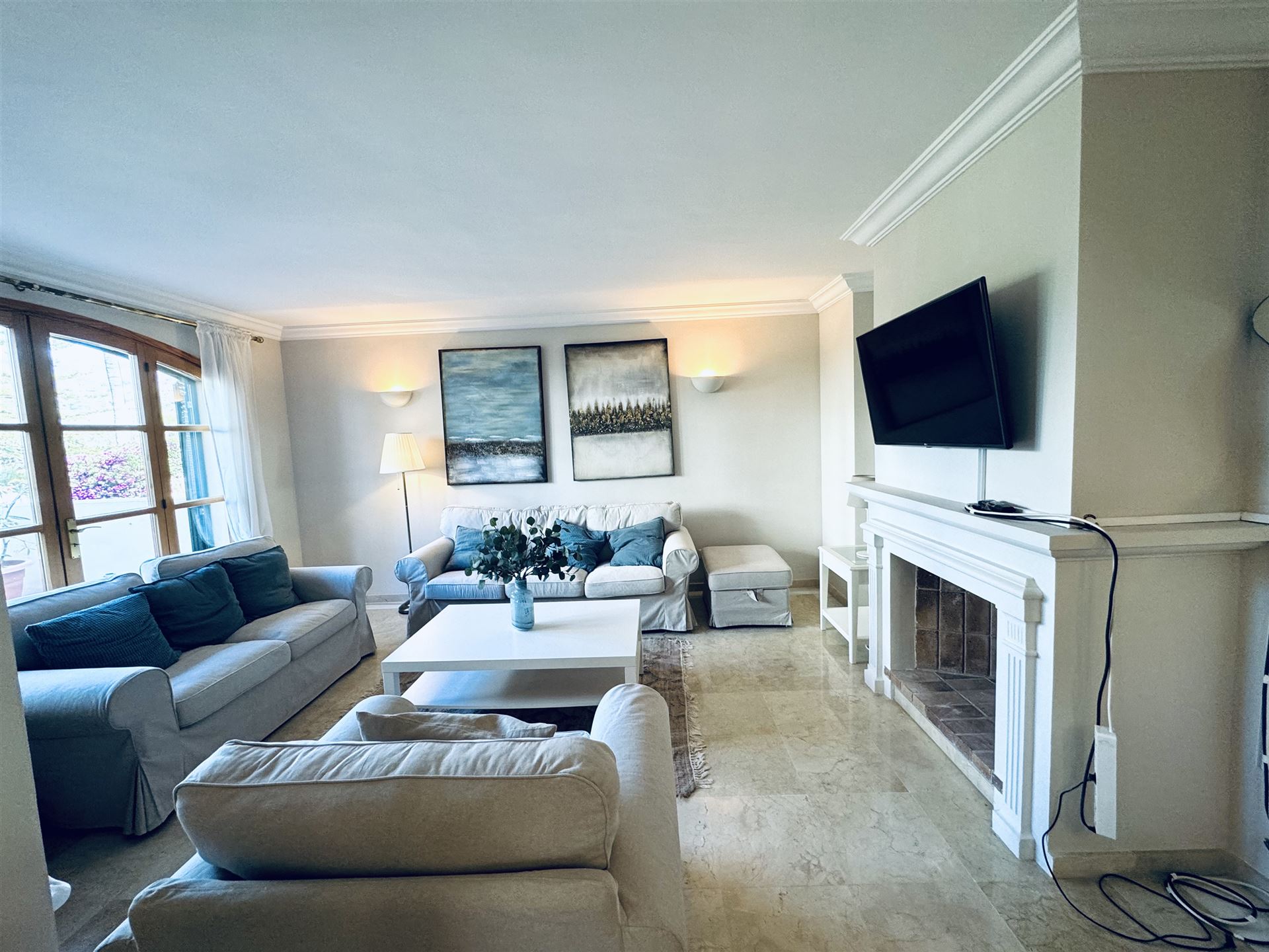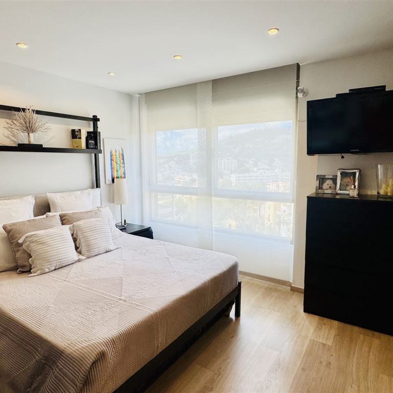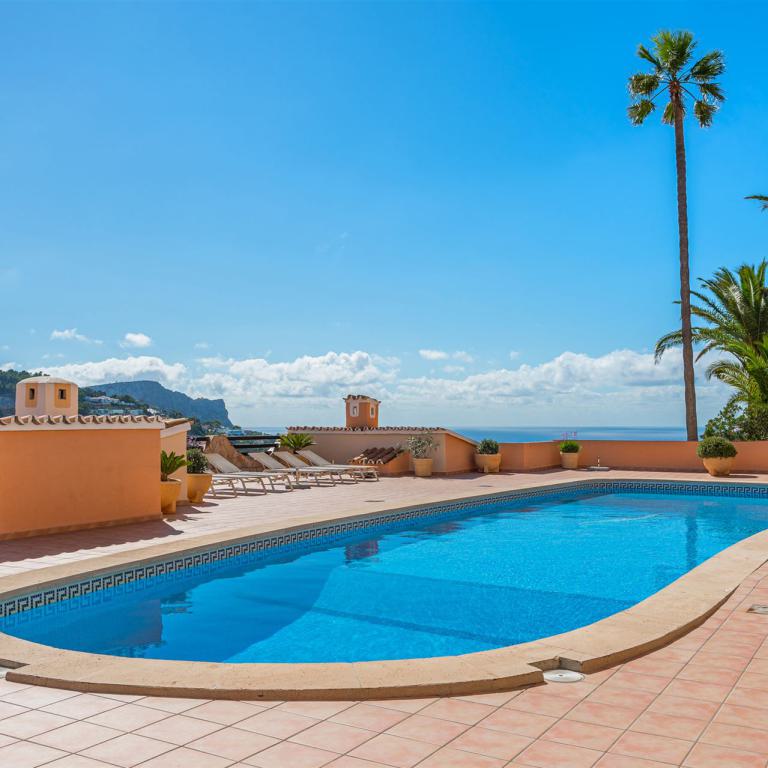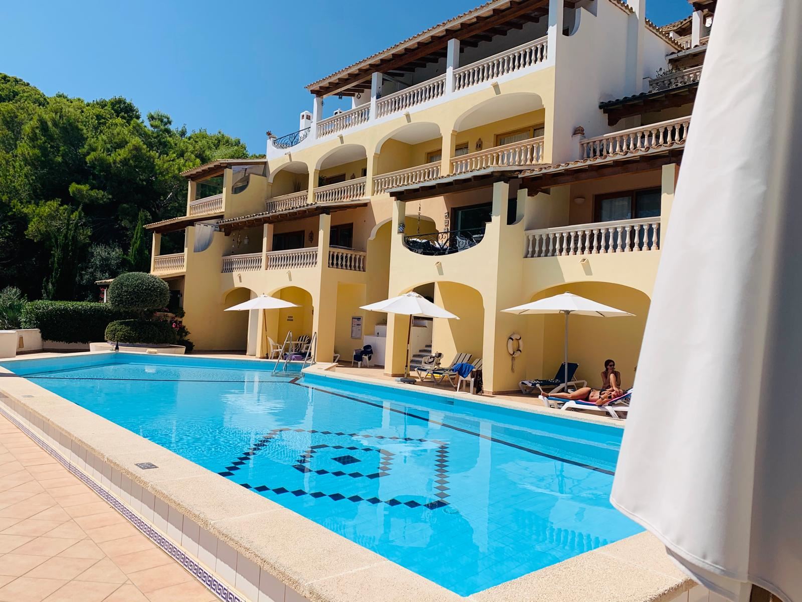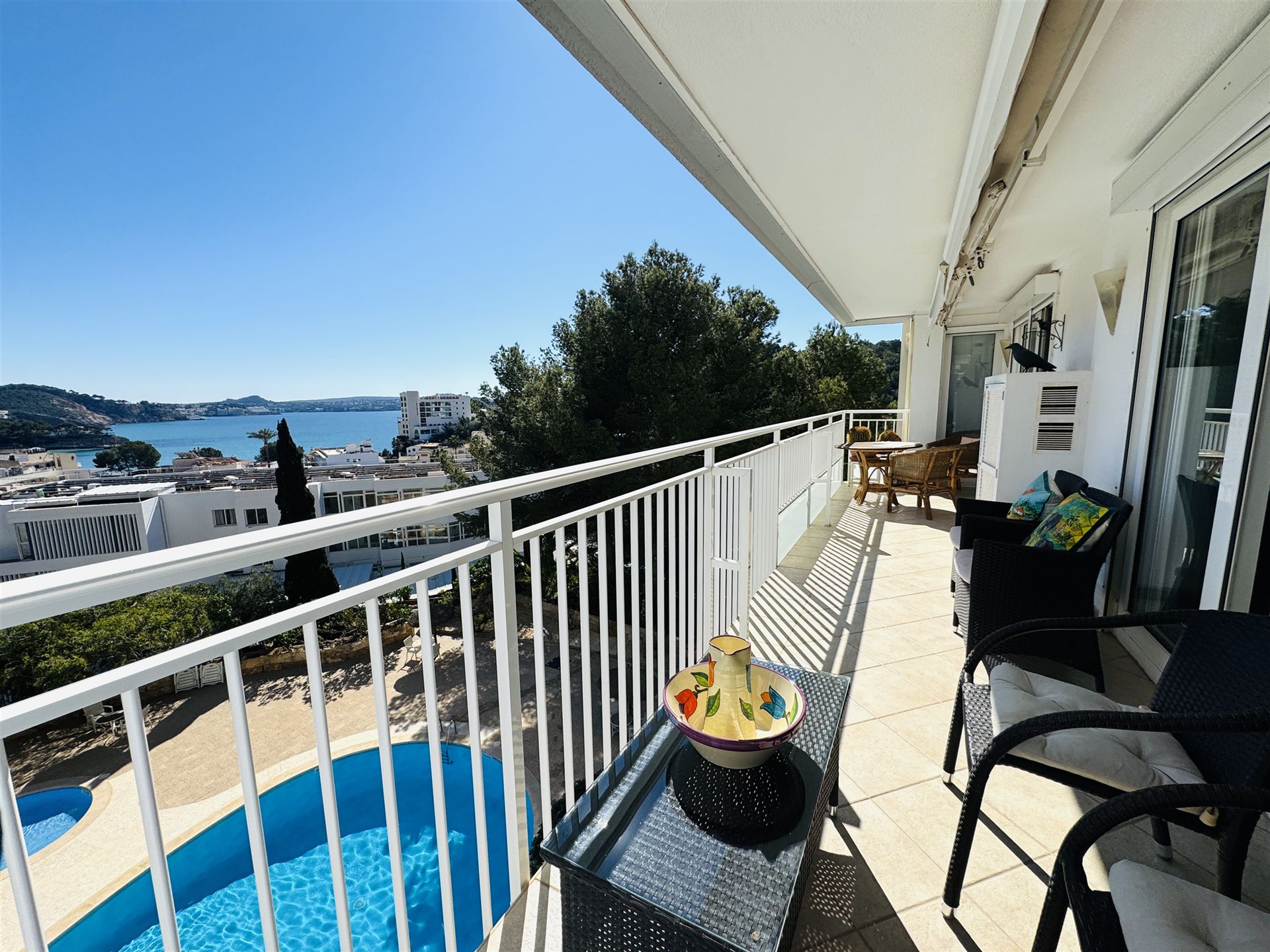 großzügiges top renoviertes Duplex Appartment mit Meer u. Panoramablick, 186 qm bebaute Fläche, 3 SZ, 2 moderne Duschbäder, gr. offener Wohn-Essbereich mit Kamin, offene weiße Einbauküche, Abstellraum, Klima, Infrarotheizung, Doppelverglasung, Privatparkplatz plus Stellplatz, G-Pool, großzügige teilweise überdachte Terrassen, wird komplett möbliert angeboten