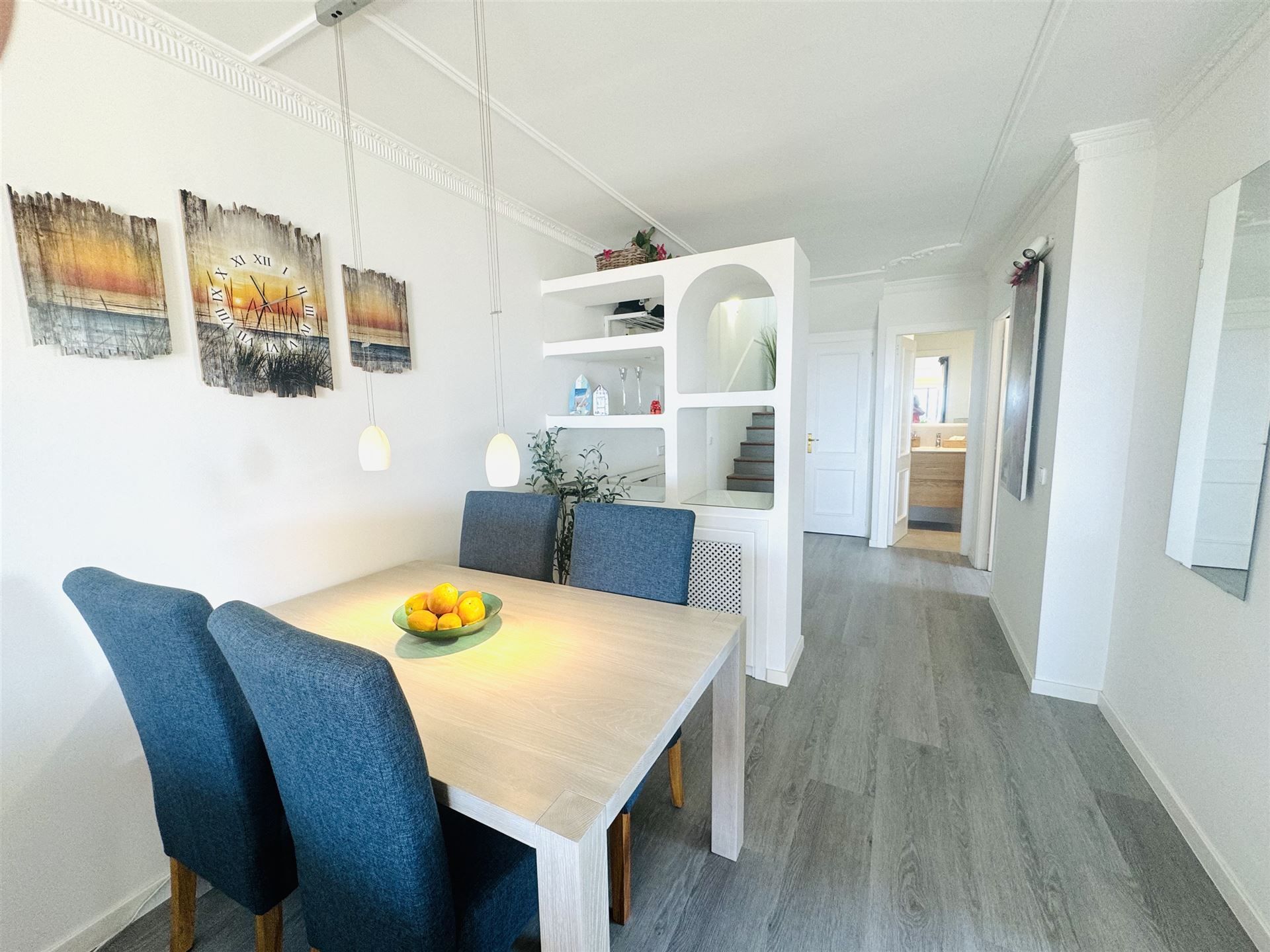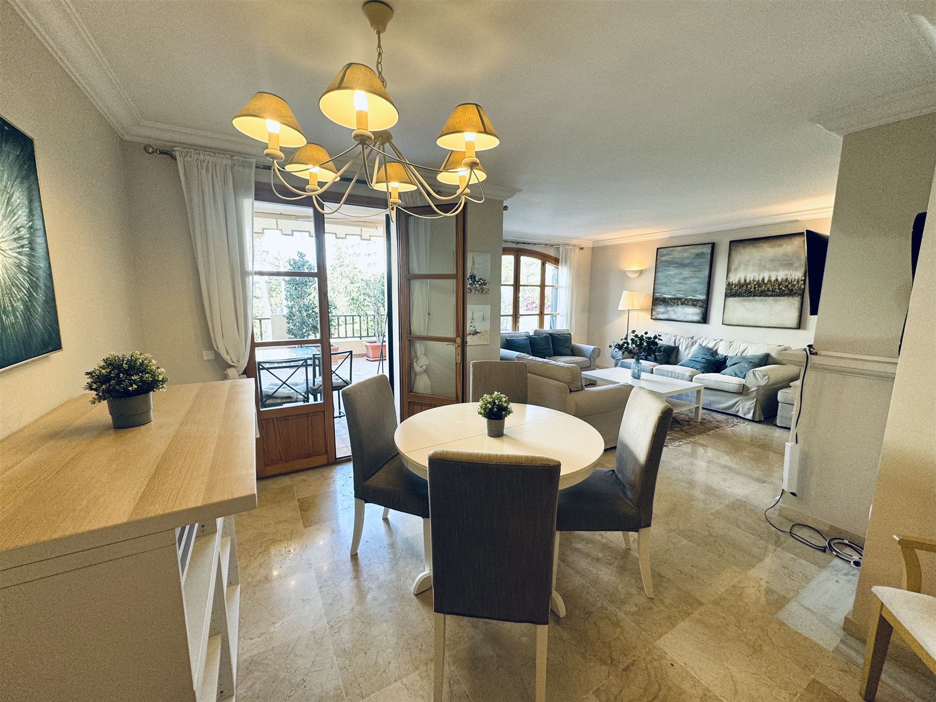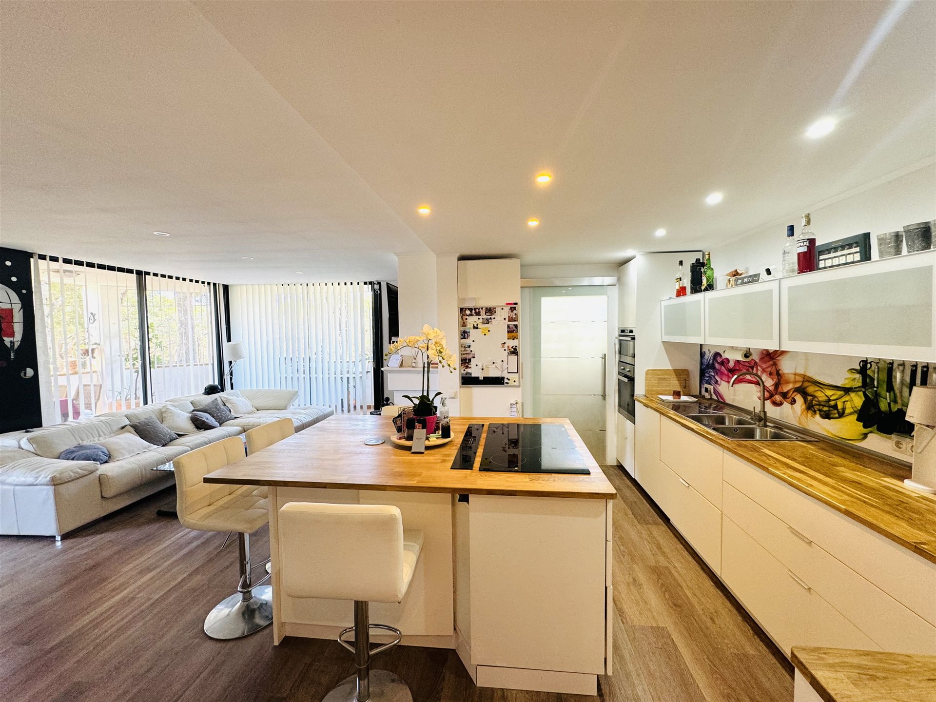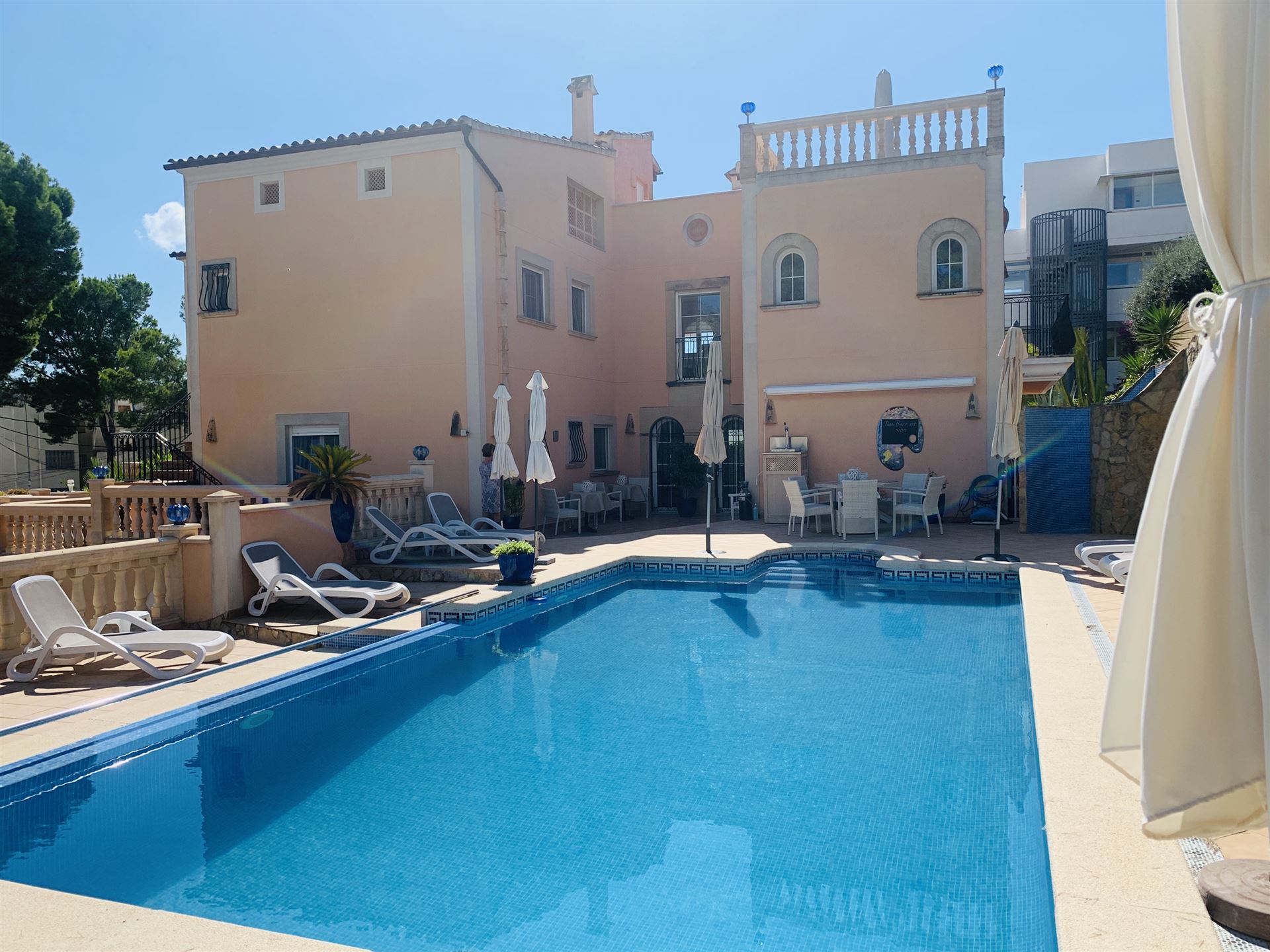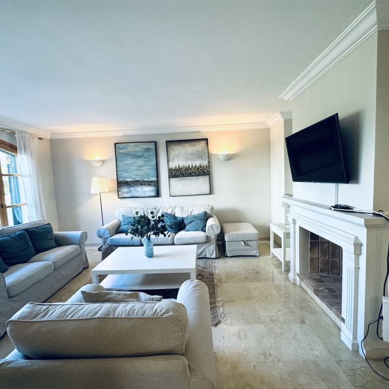 großzügiges top renoviertes Duplex Appartment mit Meer u. Panoramablick, 186 qm bebaute Fläche, 3 SZ, 2 moderne Duschbäder, gr. offener Wohn-Essbereich mit Kamin, offene weiße Einbauküche, Abstellraum, Klima, Infrarotheizung, Doppelverglasung, Privatparkplatz plus Stellplatz, G-Pool, großzügige teilweise überdachte Terrassen, wird komplett möbliert angeboten