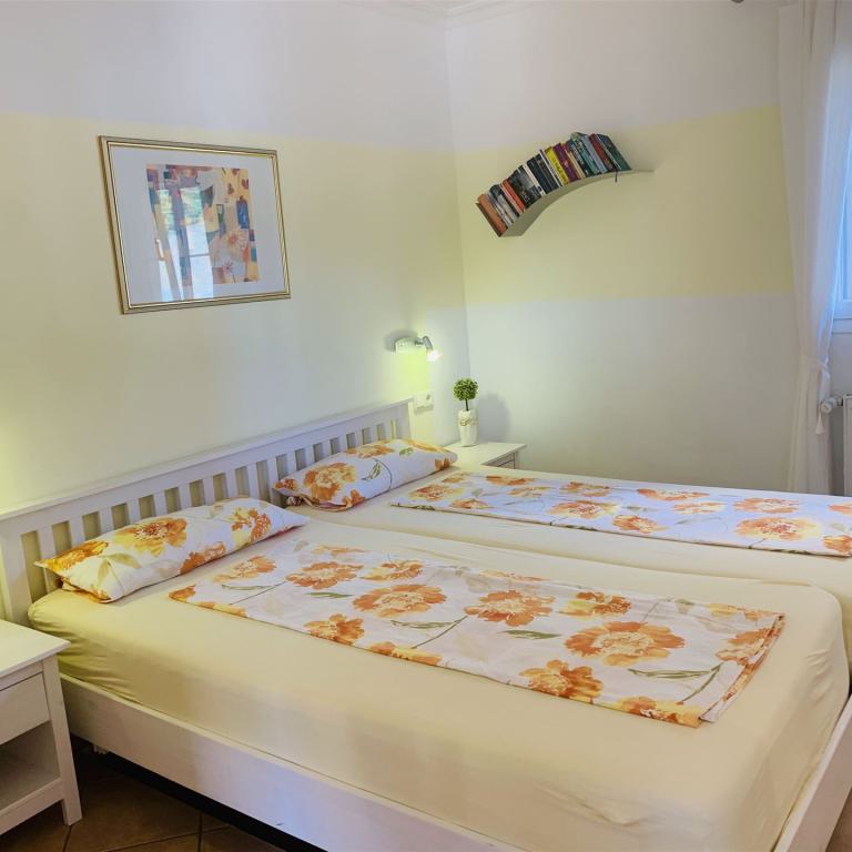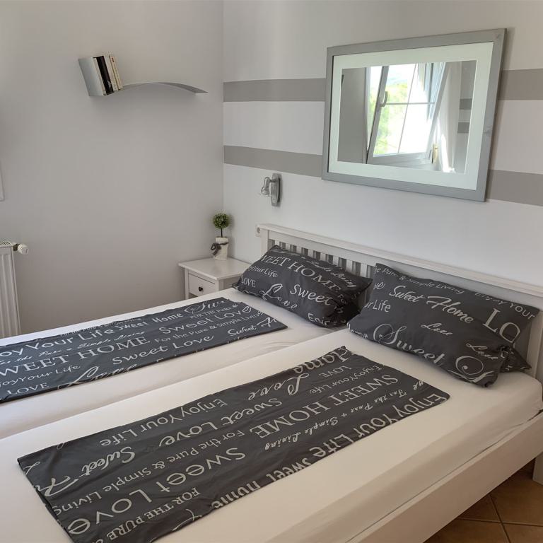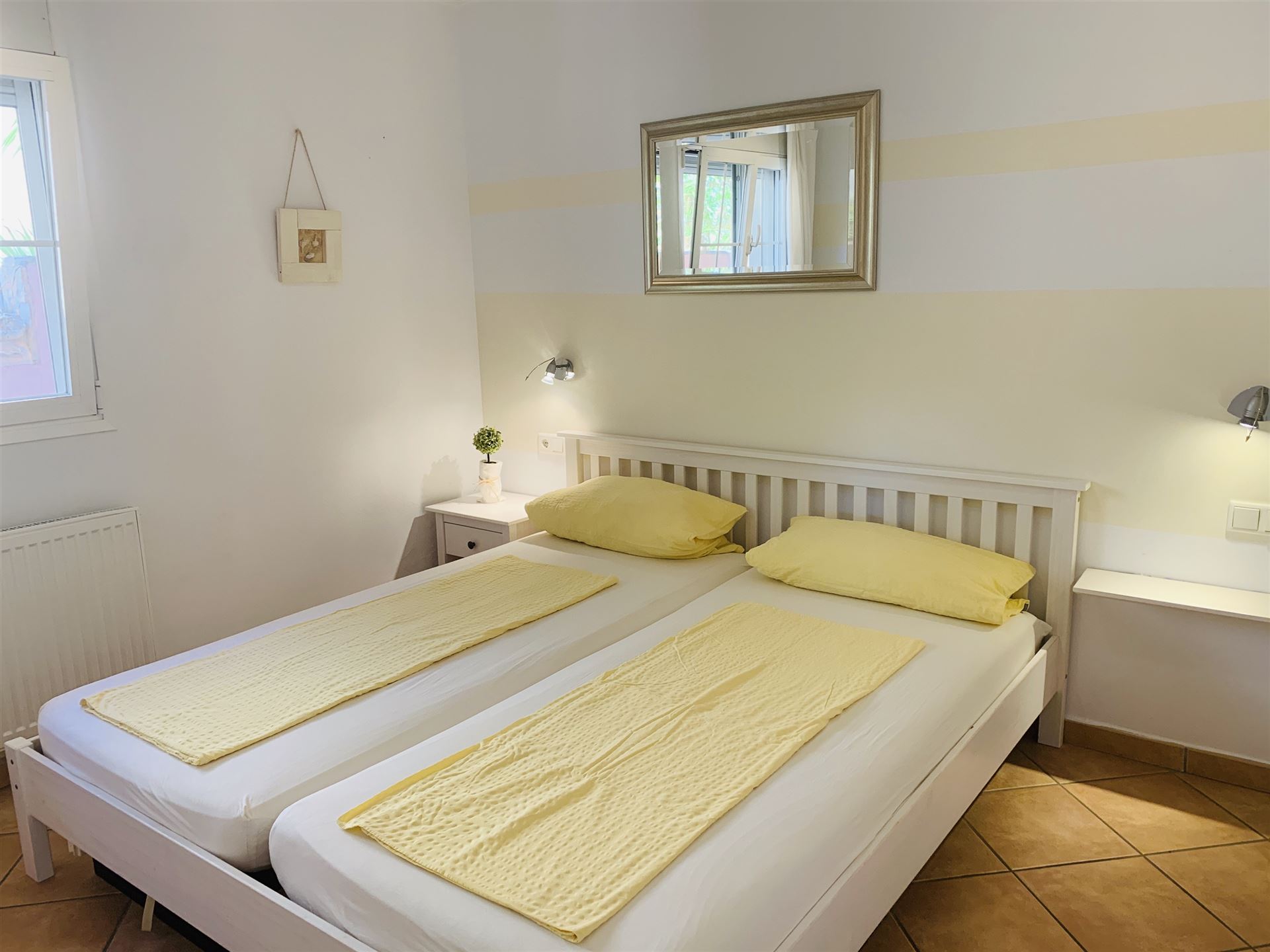 1 Gartenappartment mit 55 qm Wohnfläche 2 Schlafzimmer 1 Bad Wohn-Esszimmer Küchenzeile Doppelverglasung Ölzentralheizung Terrasse Garten Gemeinschaftspool Warmwasser über Solar