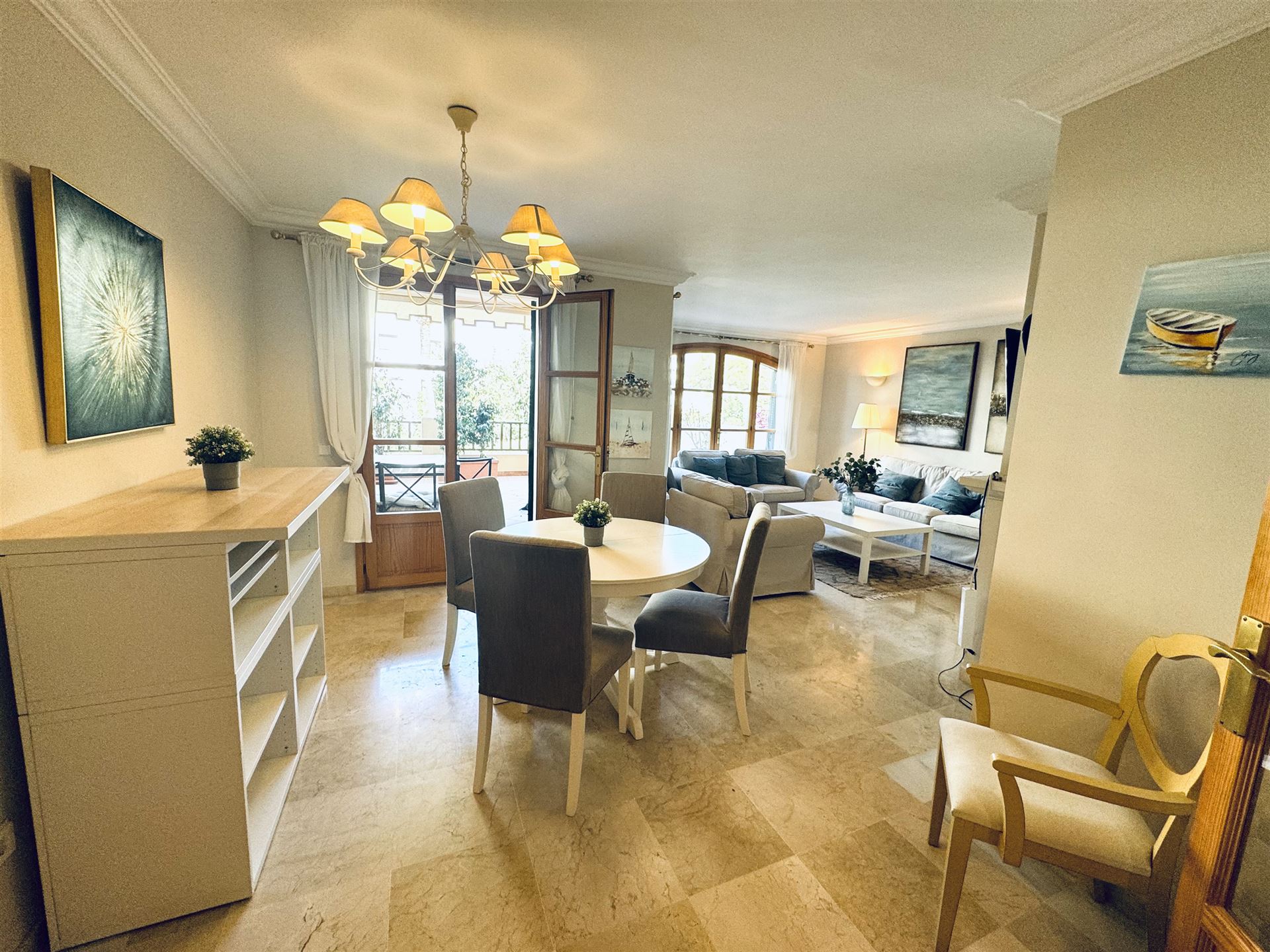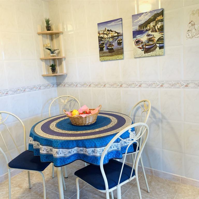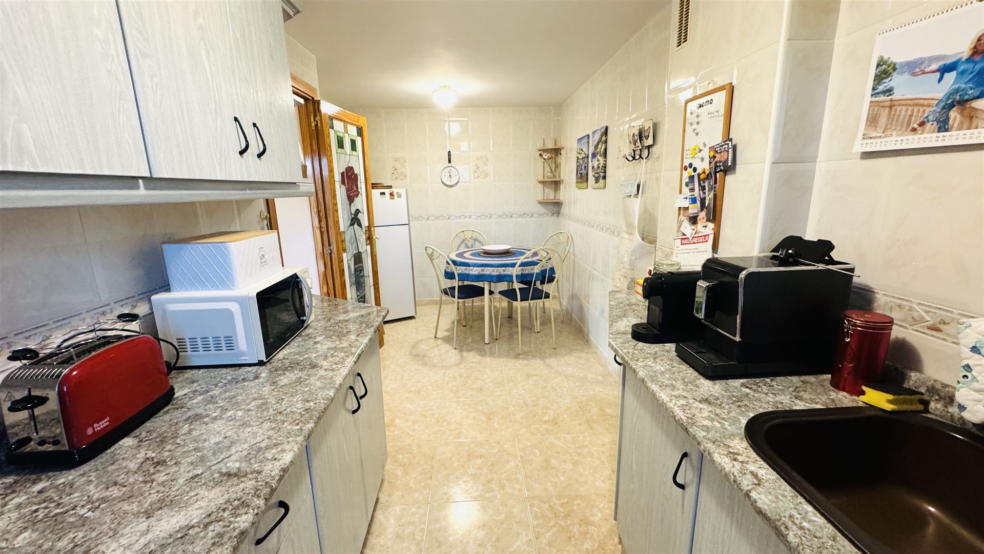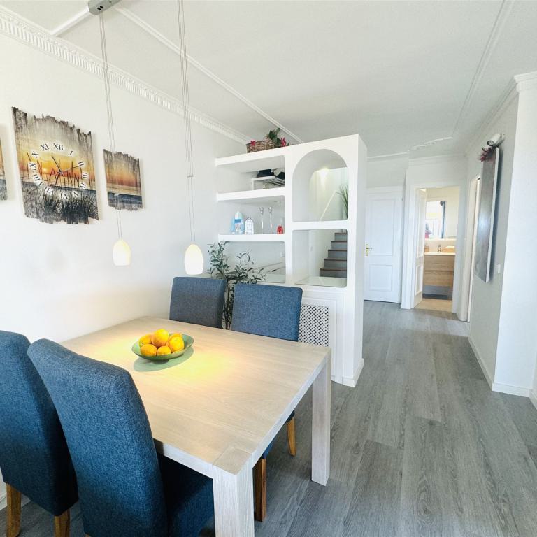 sehr schönes mediterranes Appartment mit 118 qm, 3 SZ, 2 B (1 davon en suite), geräumiges Wohnzimmer, gemütliche Wohnküche mit Sitzecke, angrenzender Wirtschaftsraum, sonnige Rundumterrasse, GPool, Aufzug, Gaszentralheizung, Doppelverglasung, wird möbliert angeboten, privater Stellplatz, fußläufig zum Boulevard u. den Stränden