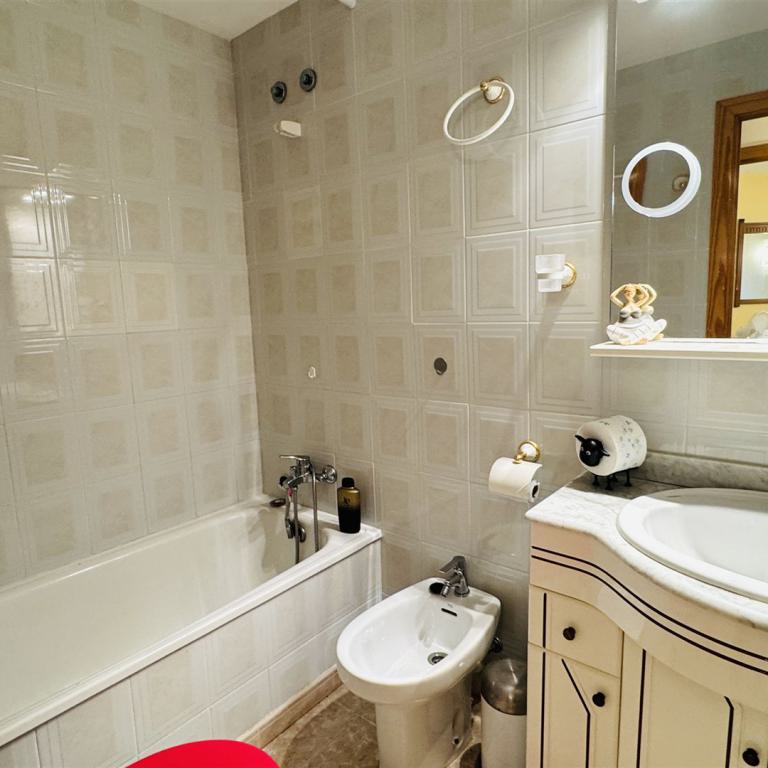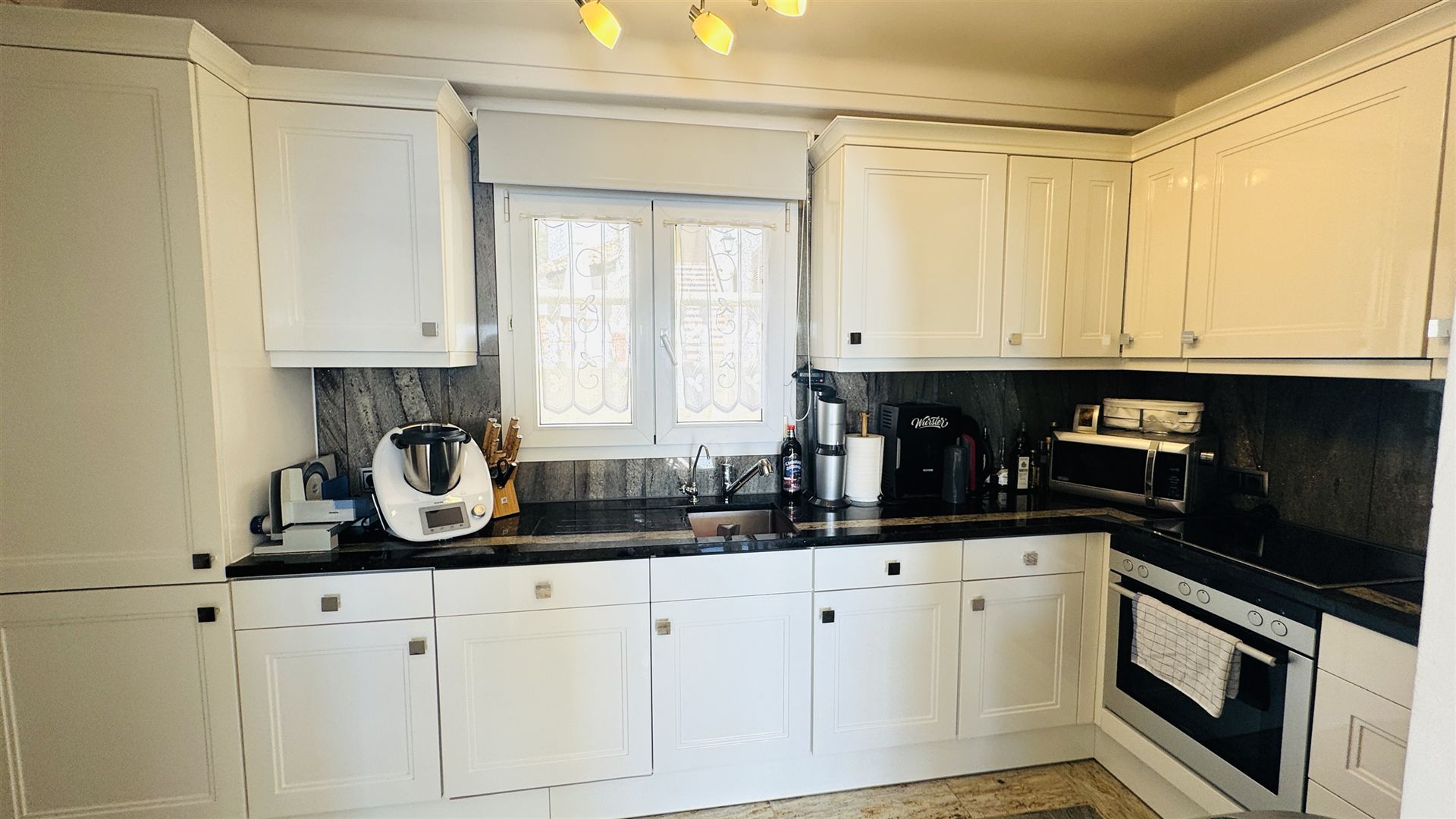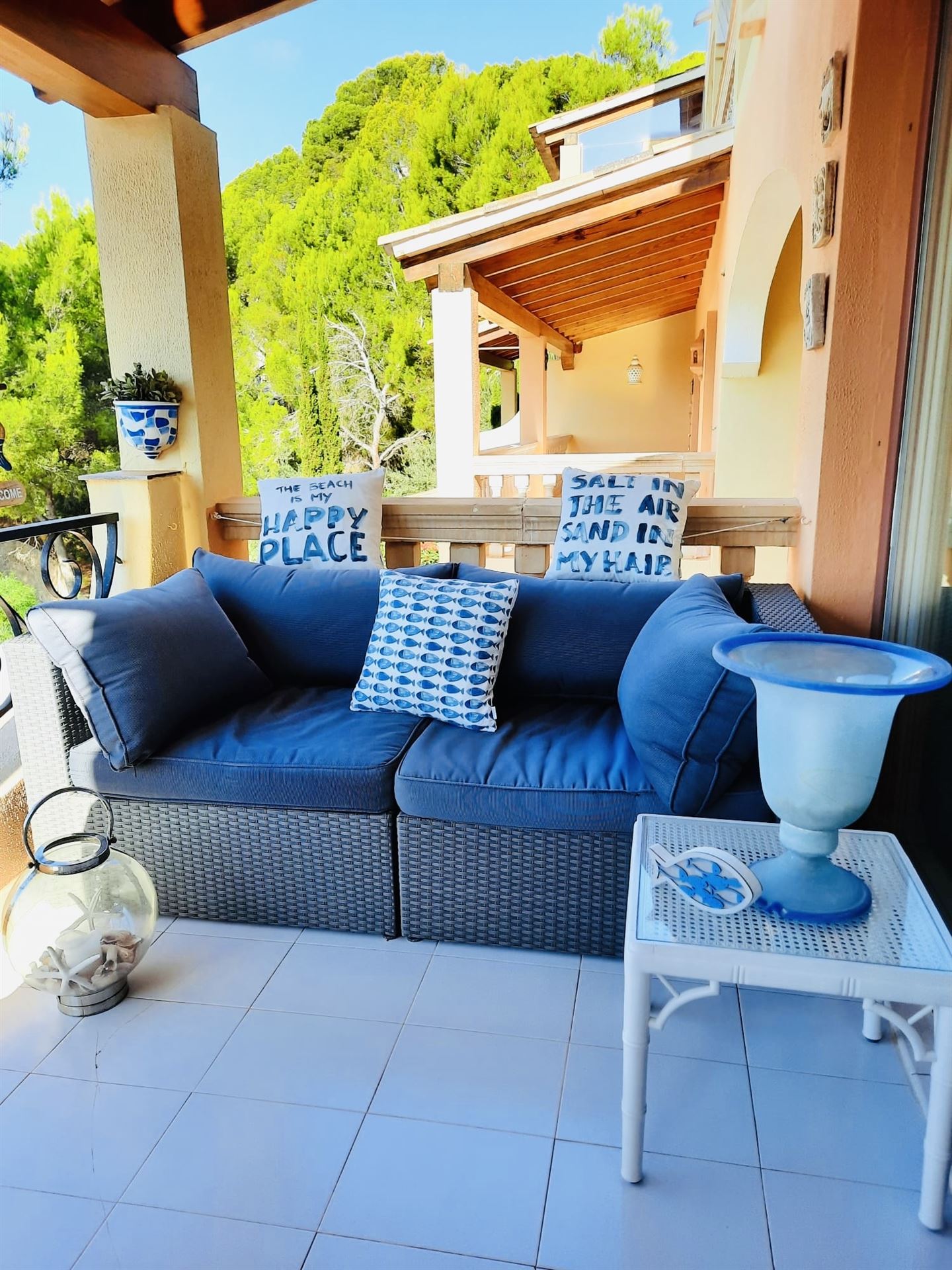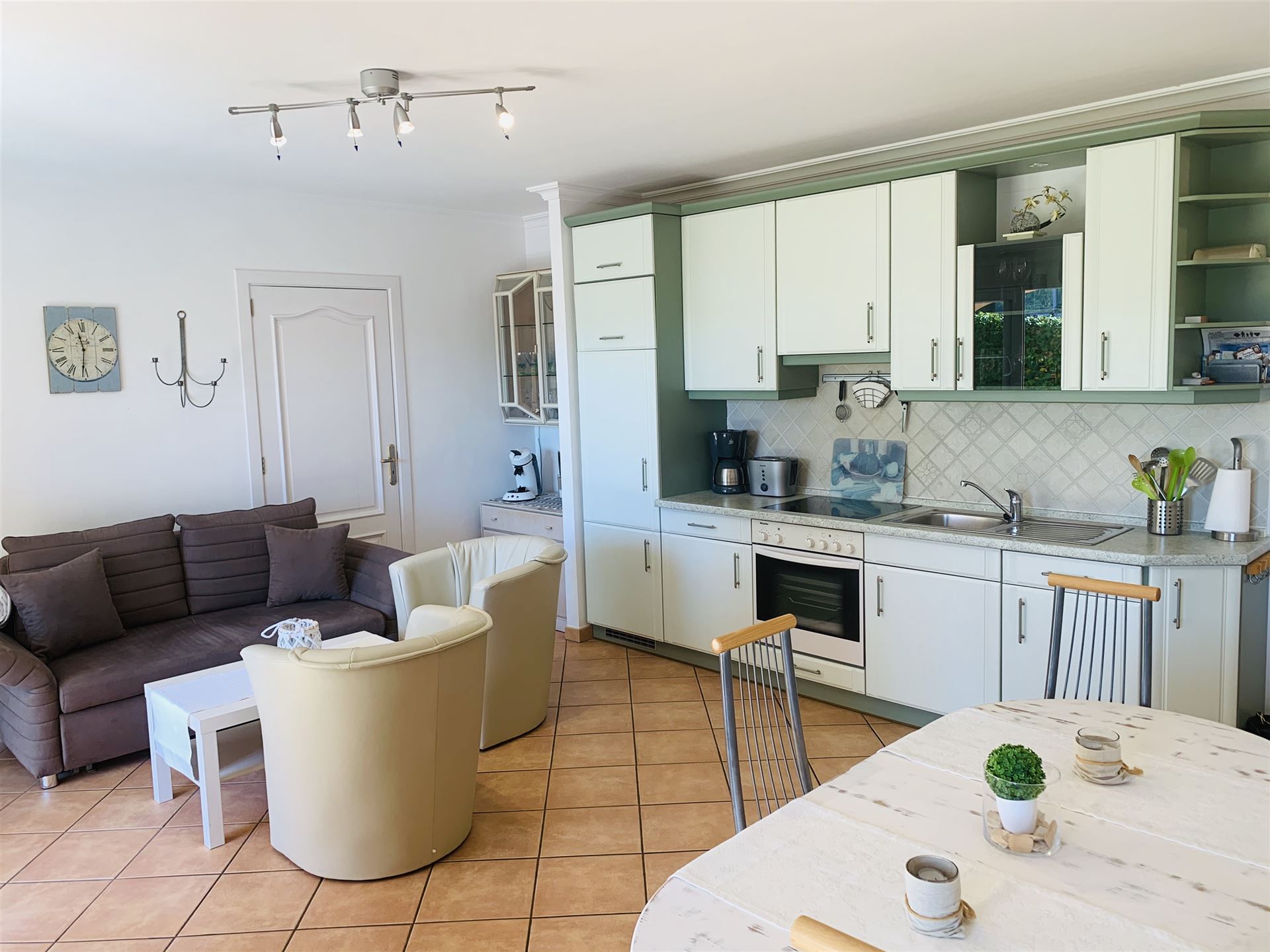 sehr schönes mediterranes Appartment mit 118 qm, 3 SZ, 2 B (1 davon en suite), geräumiges Wohnzimmer, gemütliche Wohnküche mit Sitzecke, angrenzender Wirtschaftsraum, sonnige Rundumterrasse, GPool, Aufzug, Gaszentralheizung, Doppelverglasung, wird möbliert angeboten, privater Stellplatz, fußläufig zum Boulevard u. den Stränden