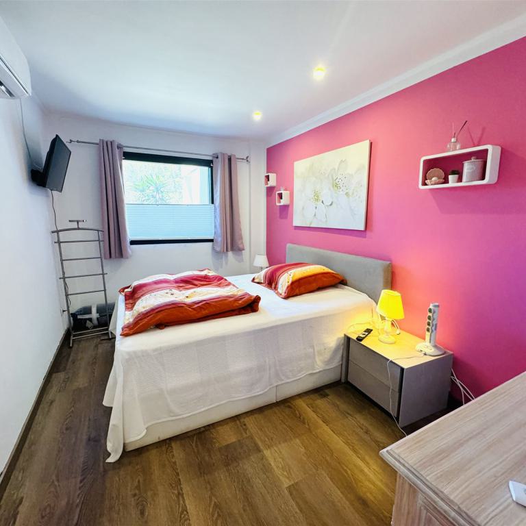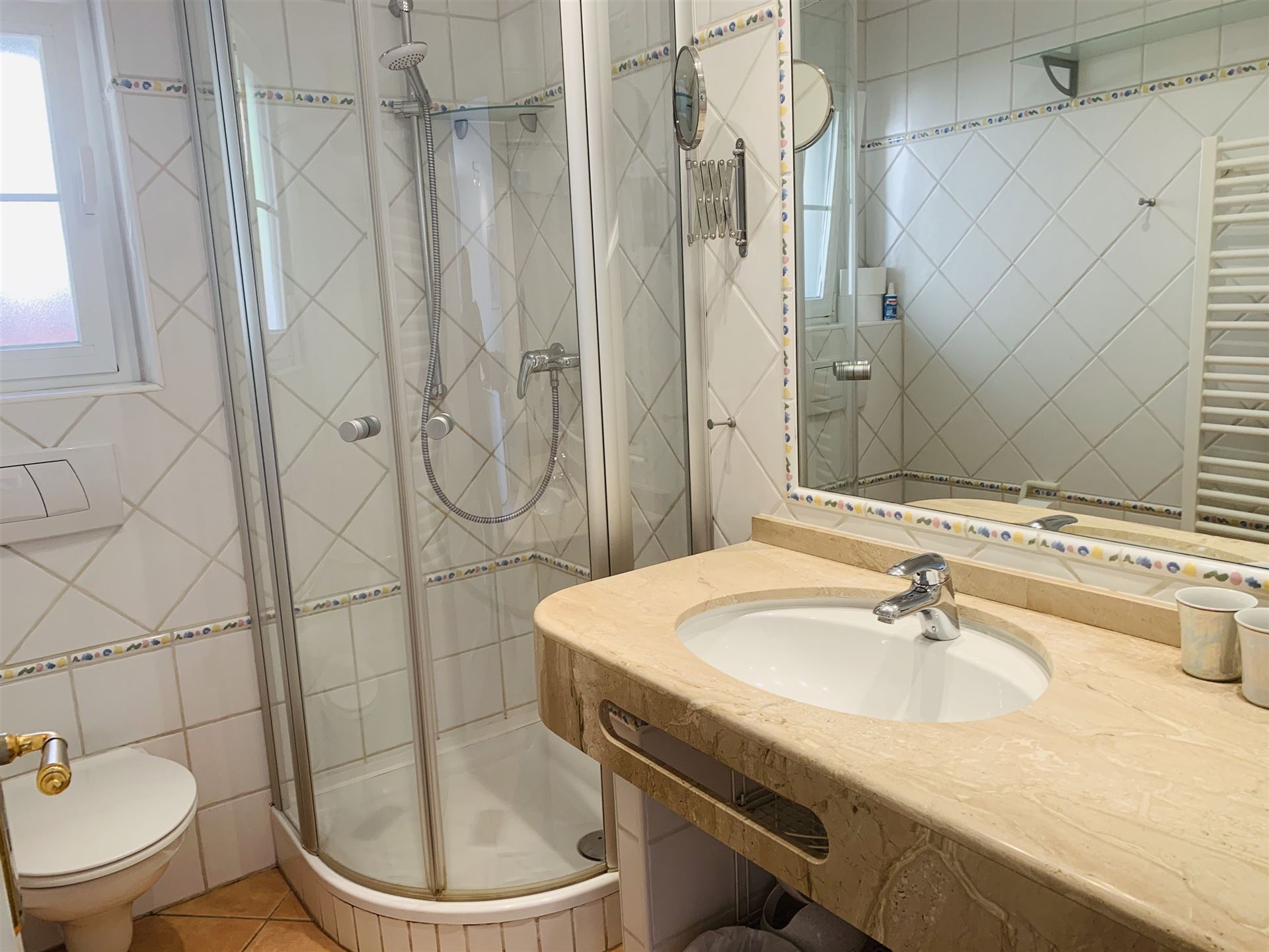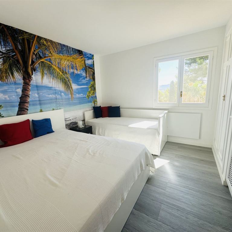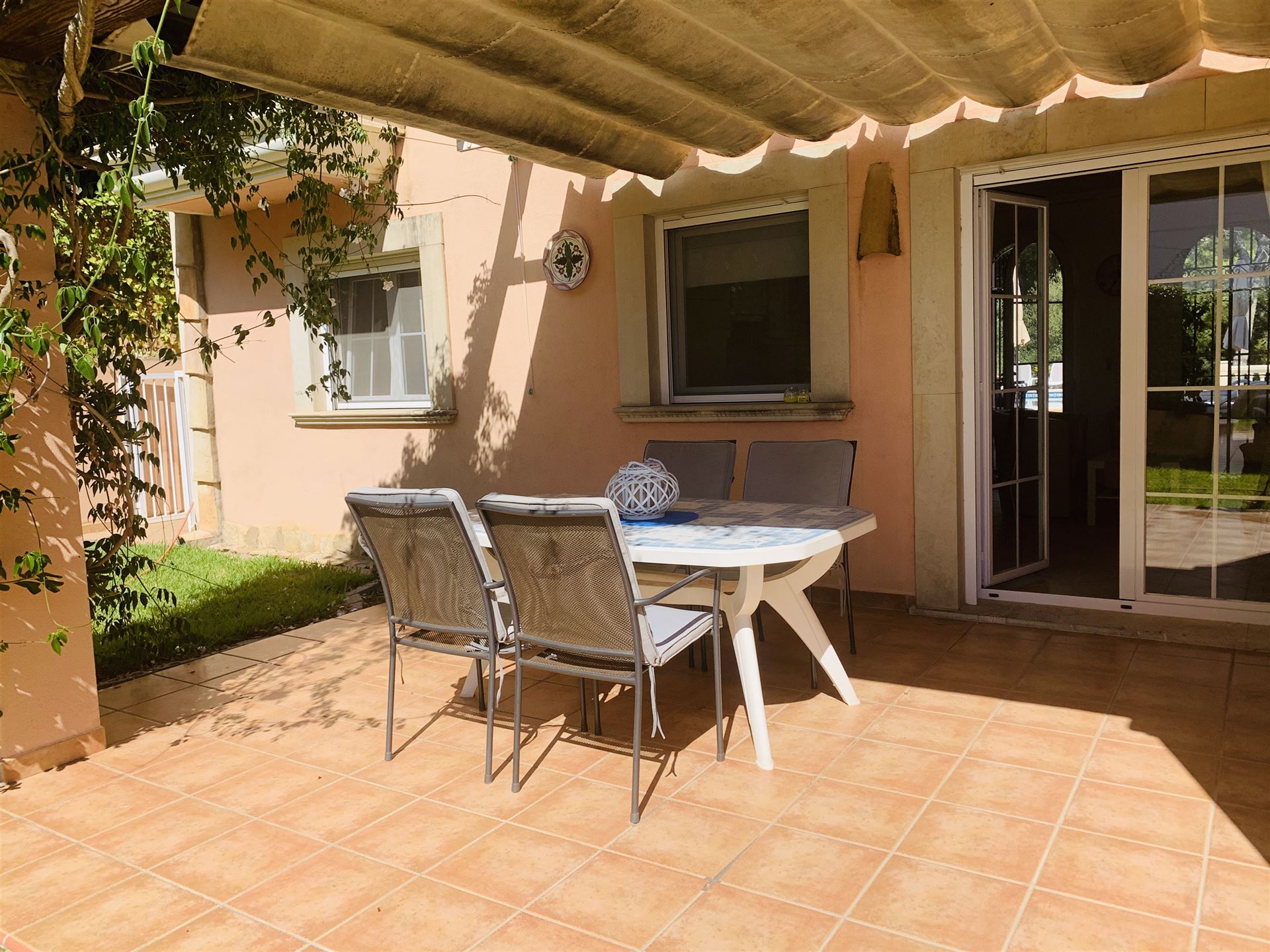 schönes Gartenappartment mit 80 qm Wohnfl, großer sonniger Garten mit Aussendusche, 2 SZ, 1 Bad, Gäste WC, Wohn-Esszimmer, Einbauküche mit angrenzendem Wirtschaftsraum, Klima, Doppelverglasung, Rolladen, privater Tiefgaragenplatz, BJ 1995, komplett möbliert, G-Pool, nahe Strand und Boulevard