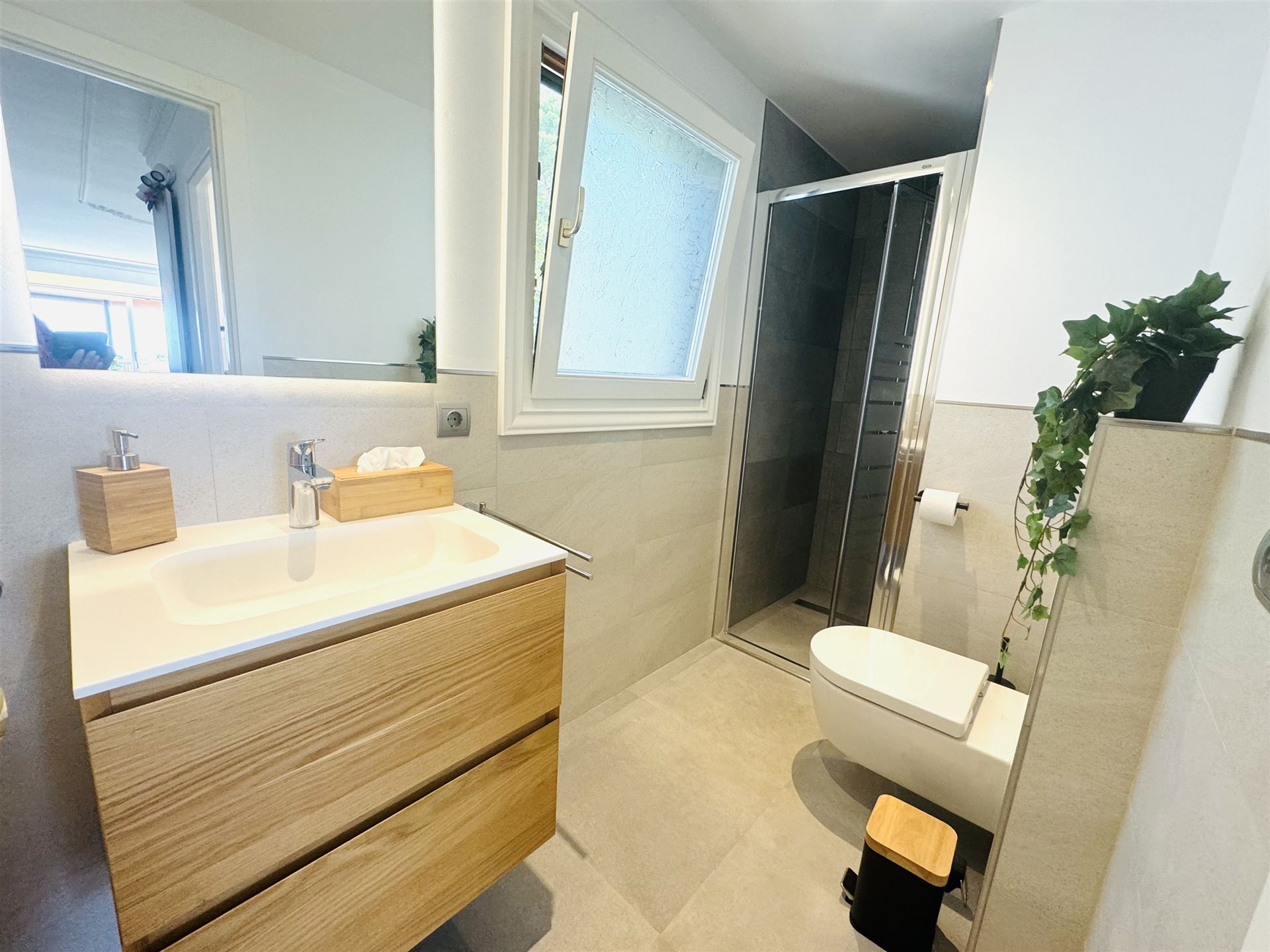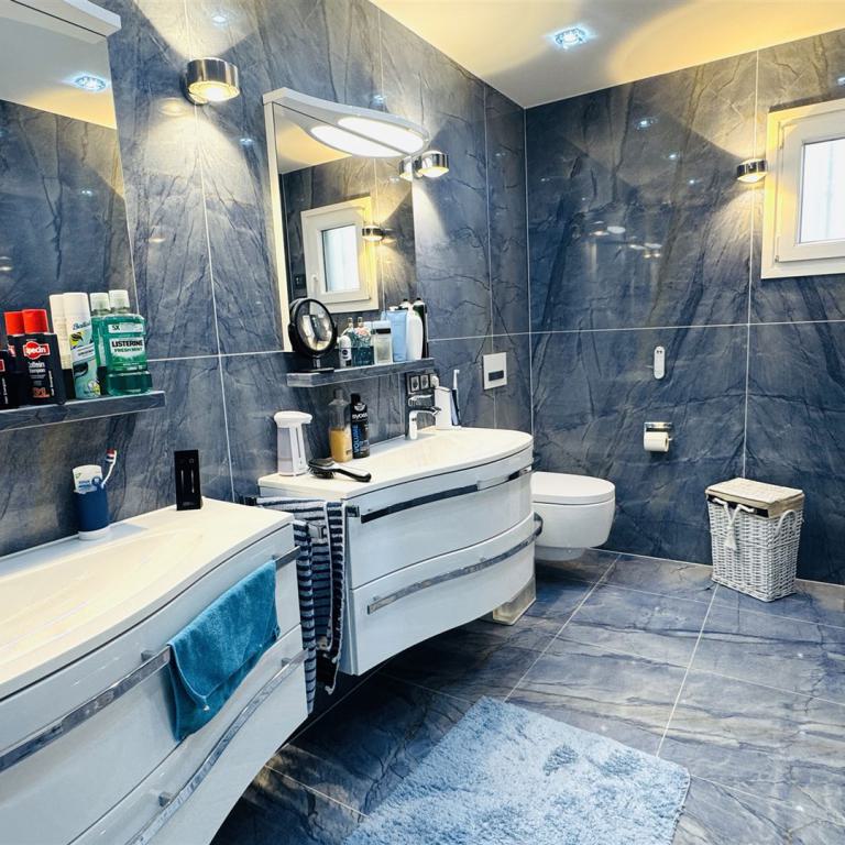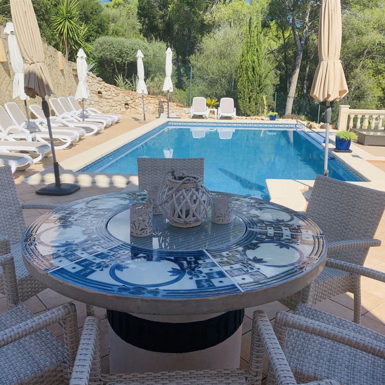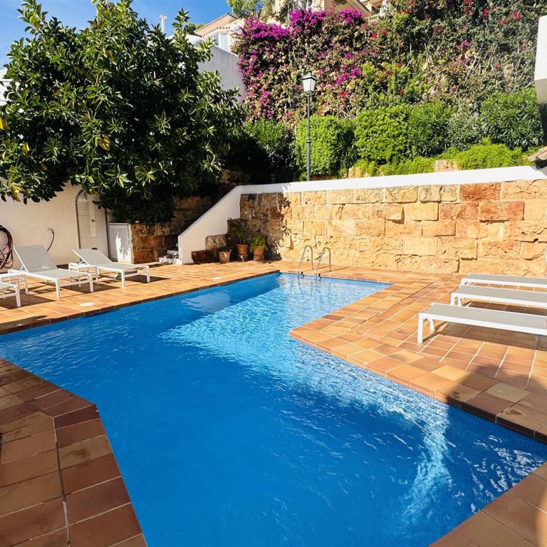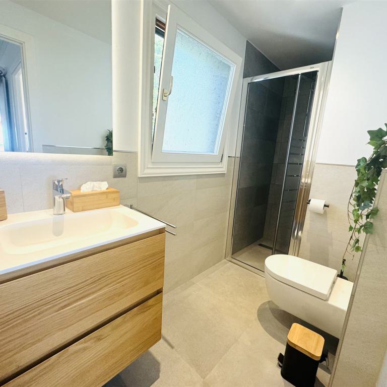 kernsaniertes Gartenappartment nahe Malgrat Felsen mit 90 qm Wohnfl., 24 qm Terrasse, 40 qm Garten, 3 SZ, 2 Bäder, offener Wohn-Essbereich mit Kamin, offene Einbauküche, Wirtschaftsraum, Kellerraum, Klima, Doppelverglasung, privater Stellplatz, G-Pool