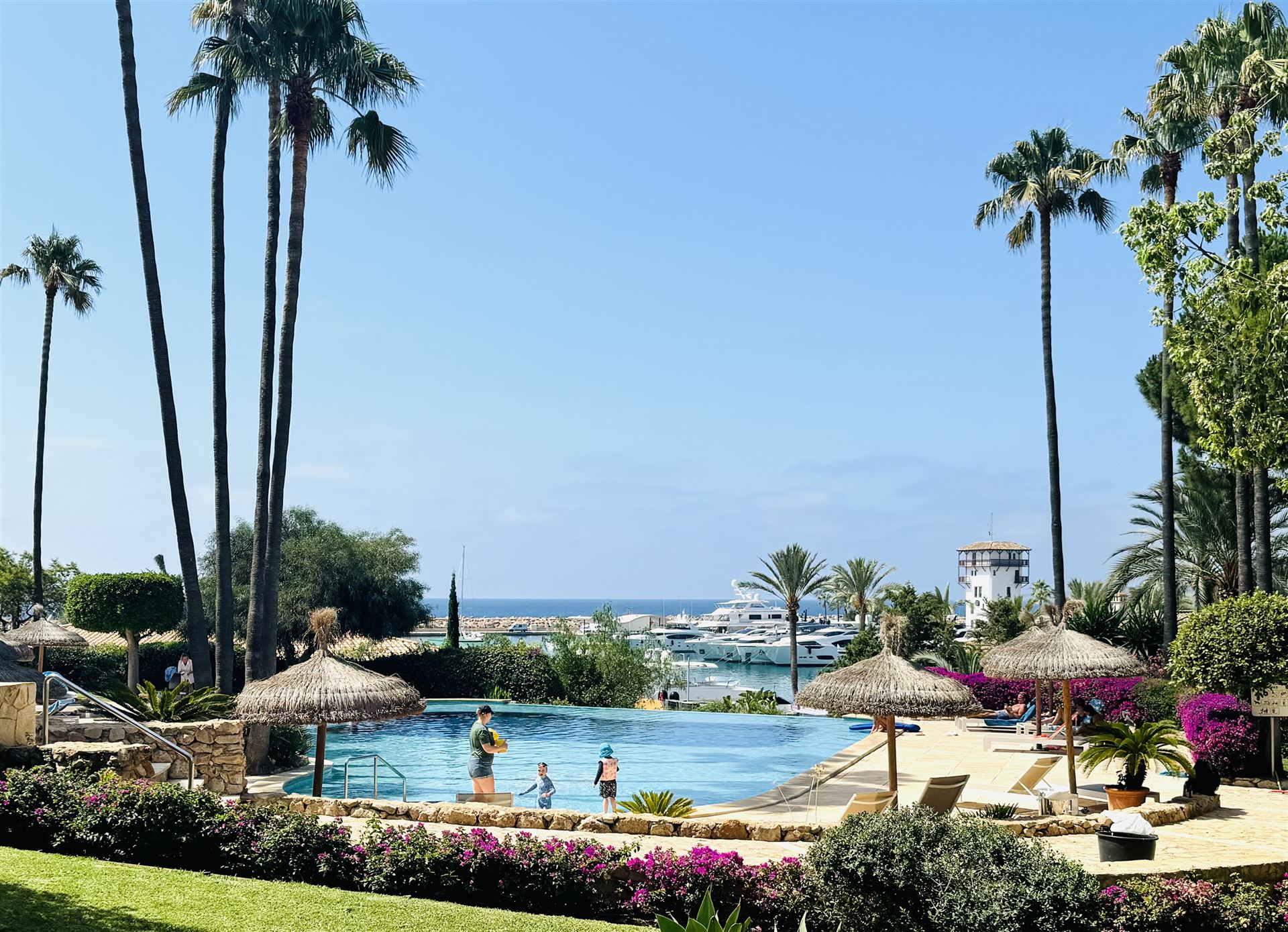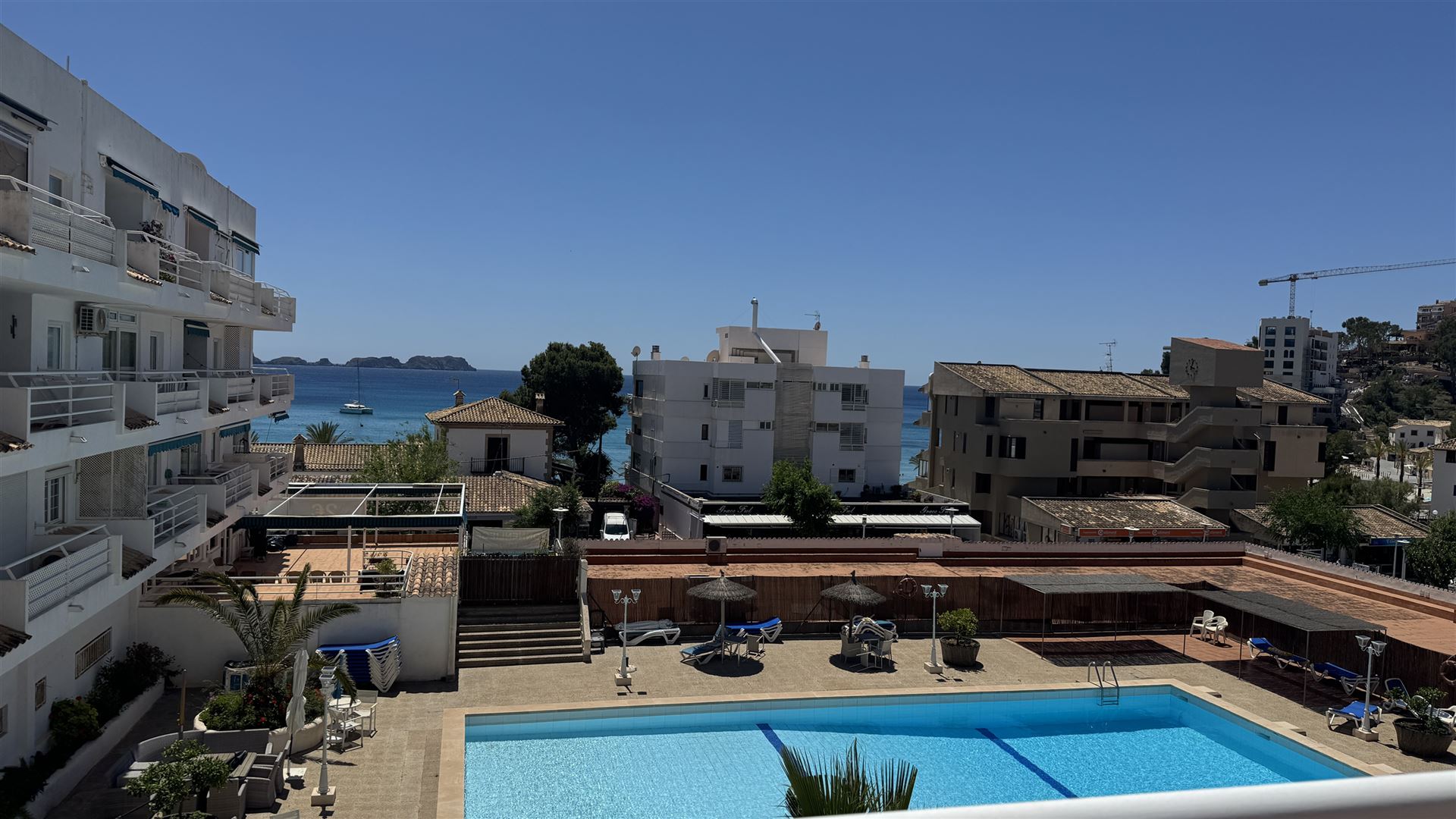 renoviertes Penthouse mit Meer u. Hafenblick, 103 qm Wohnfläche, 62 qm Terrassen, 2 SZ, 2 B, Wohn-Esszimmer, 4 Balkone, begehbare Dachterrasse, Klima, komplett neu möbliert, G-Pool, ruhige Lage