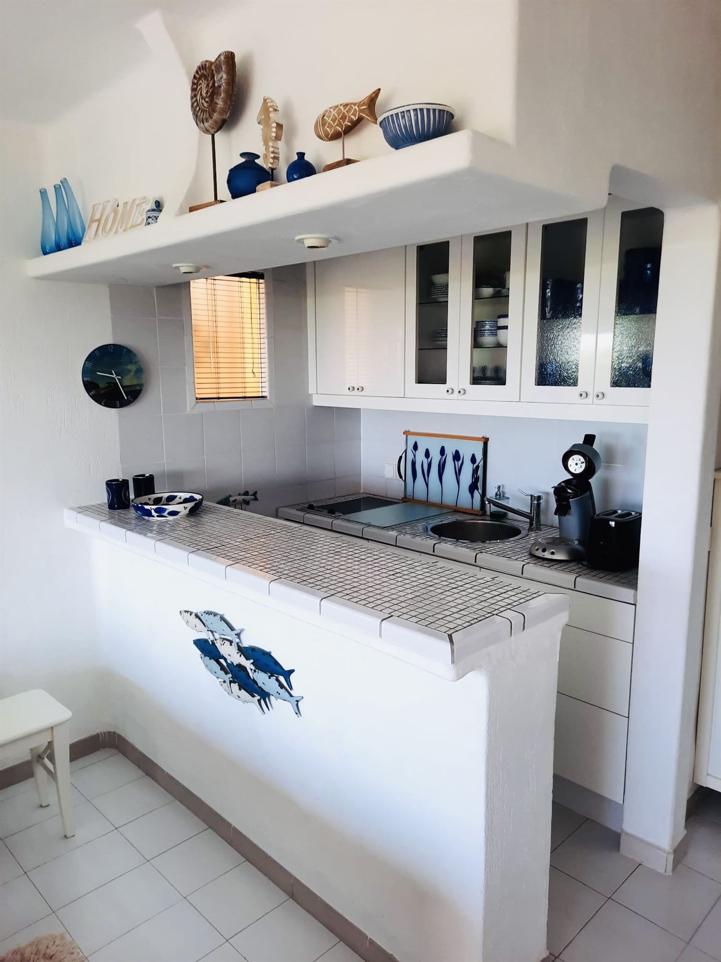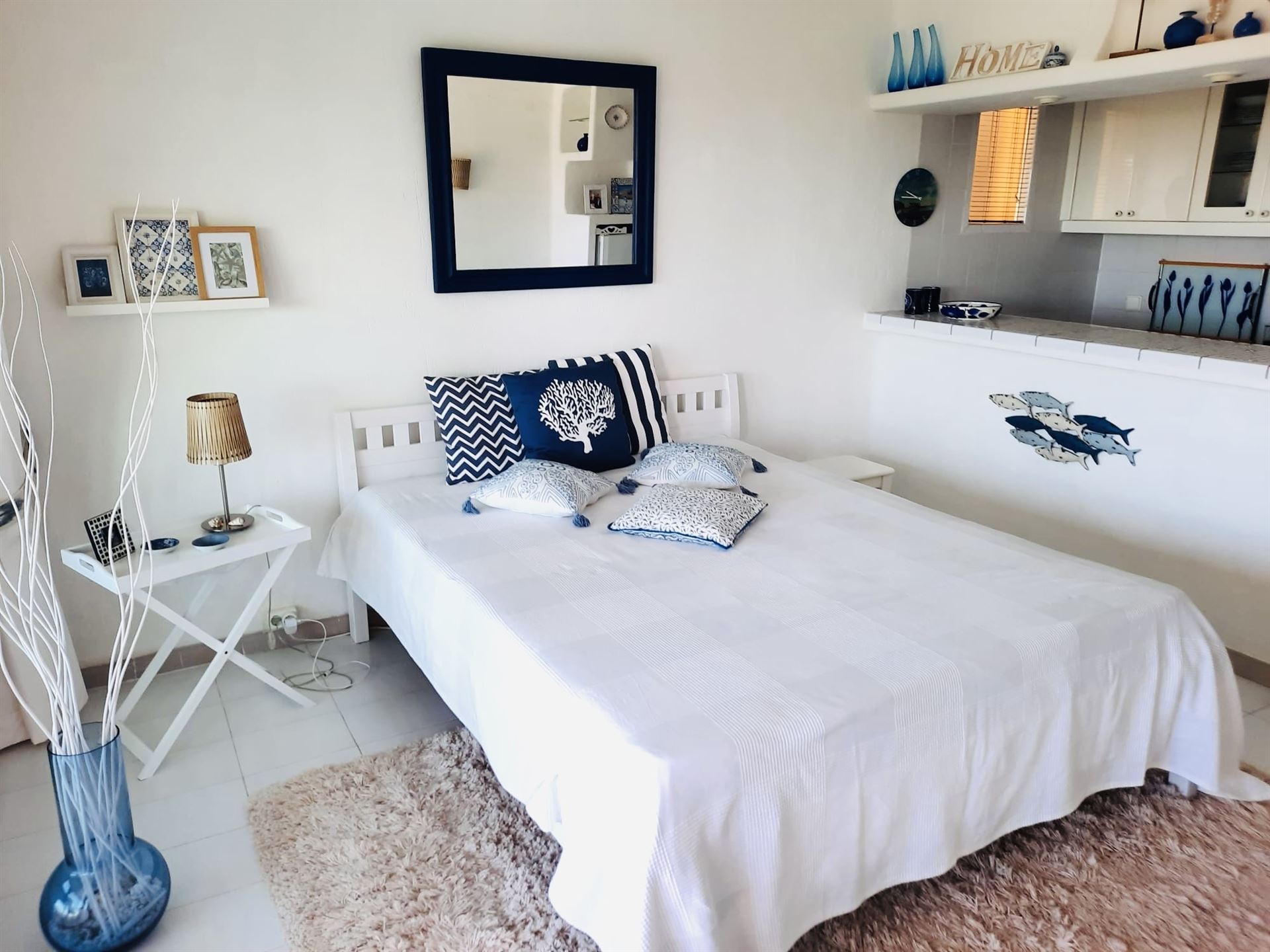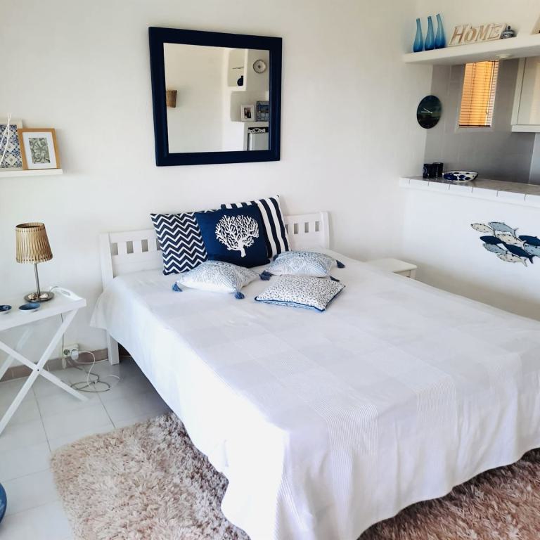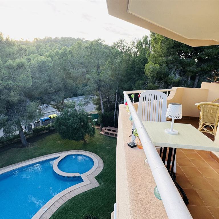 Studio in mediterraner Anlage, ca. 35 qm Wohnfl., 1 Zimmer, Küchenzeile mit Esstheke, Duschbad, möbliert, G-Pool, Stellplatz, Abstellraum, Balkon, Waschmaschinenraum, ruhige Lage, Meerblick, Südlage