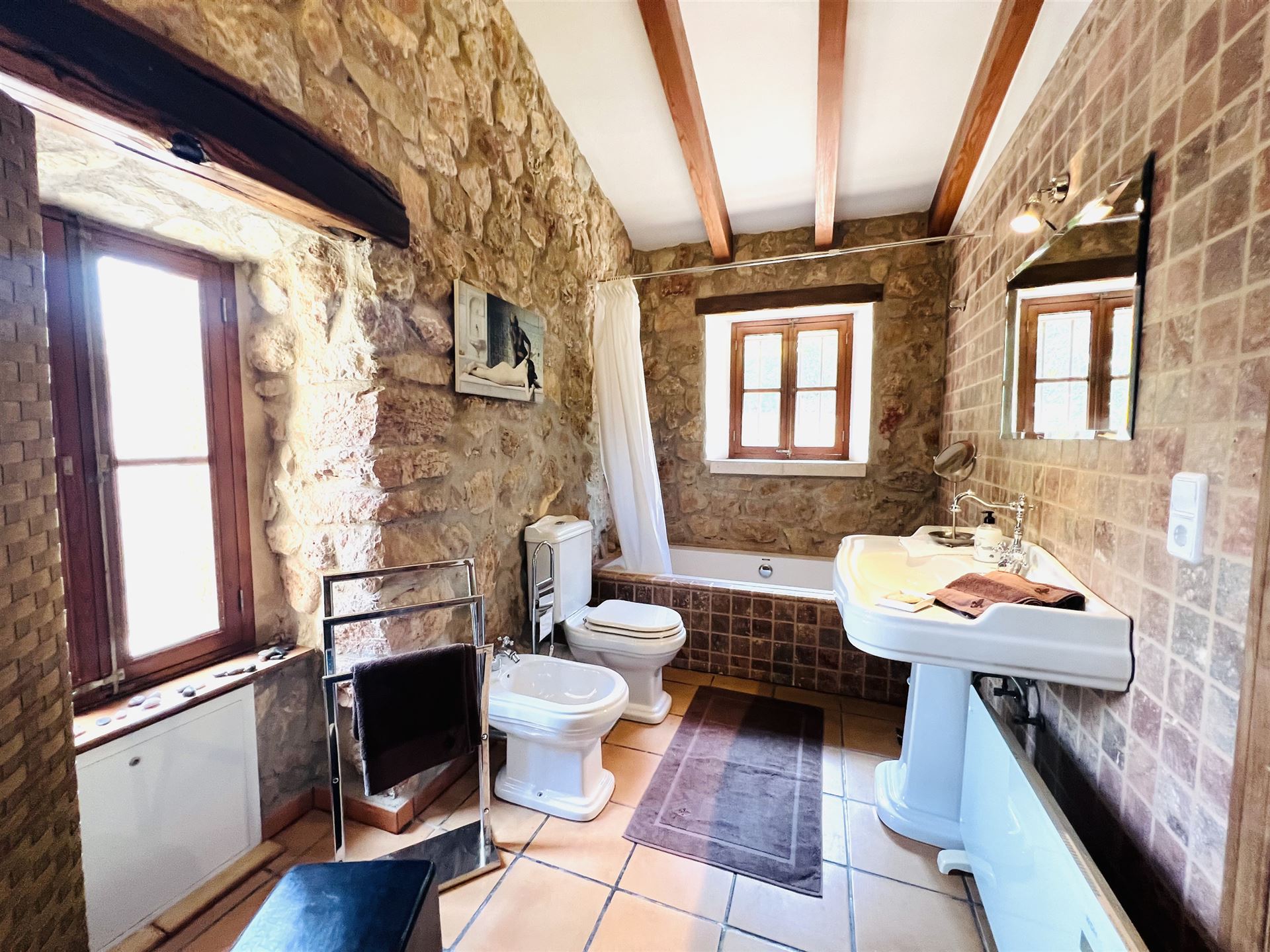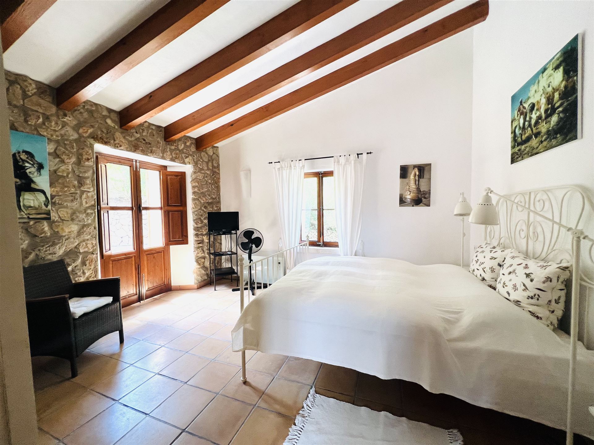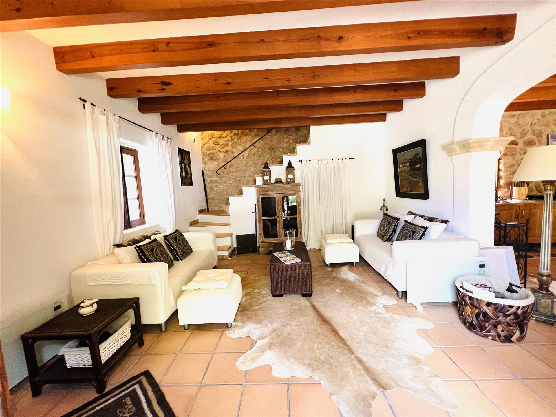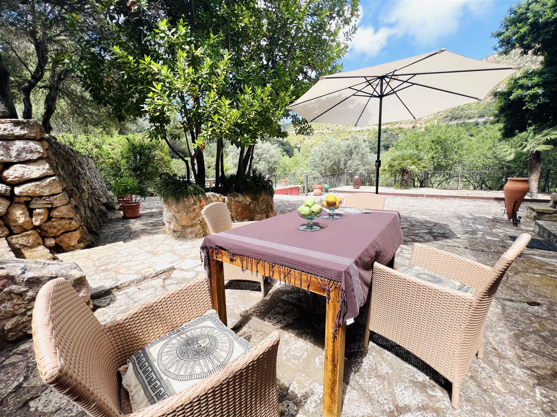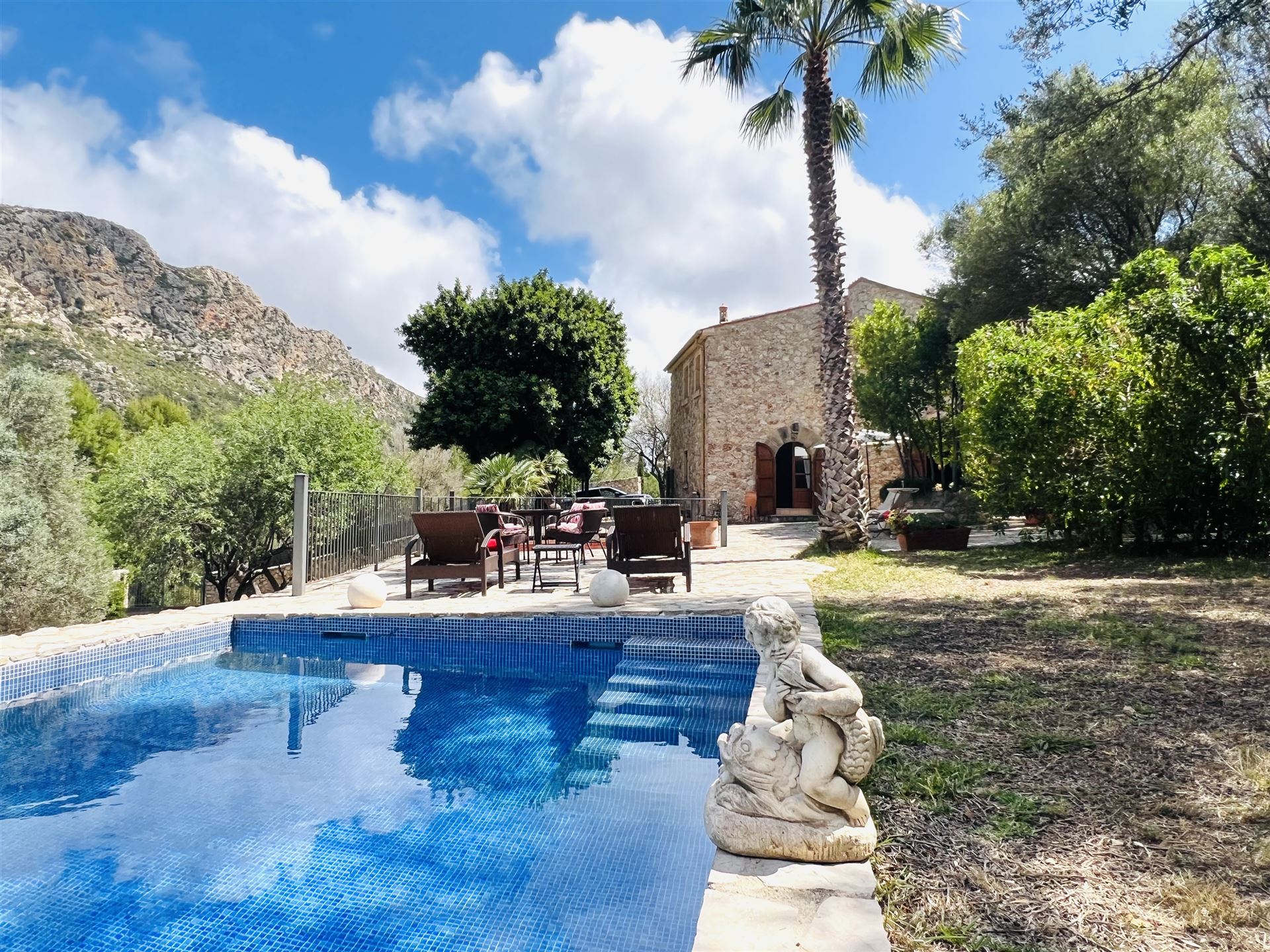 sehr schöne Finca in originalgetreuer Bauweise im Naturschutzgebiet gelegen, 2000 qm Grundstück, 160 qm Wohnfl., 2 SZ, 2 Bäder, geräumiges Wohn-Esszimmer mit Kamin, offene Wohnküche, Aussensommerküche, Pool, mehrere Terrassen, Gartenhaus, Landschaftsblick in Tal, mehrere Stellplätze, 5 Min. bis Andratx