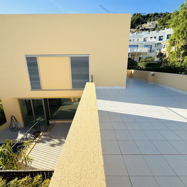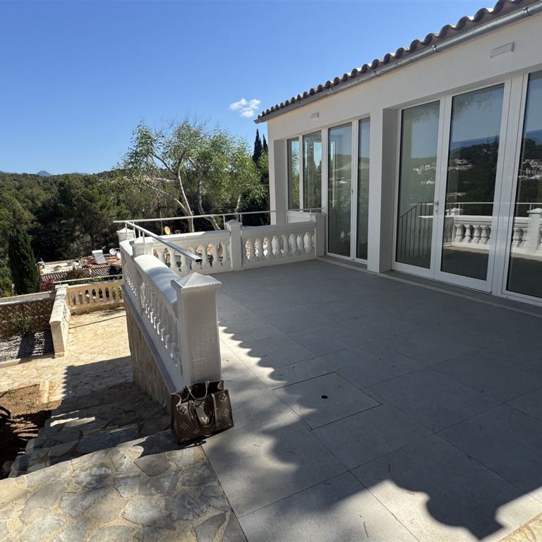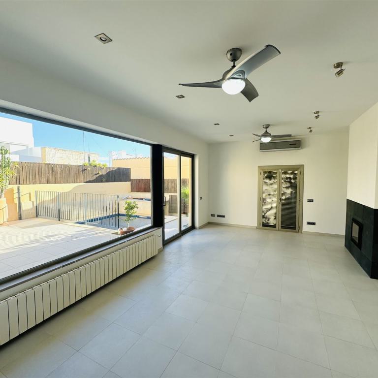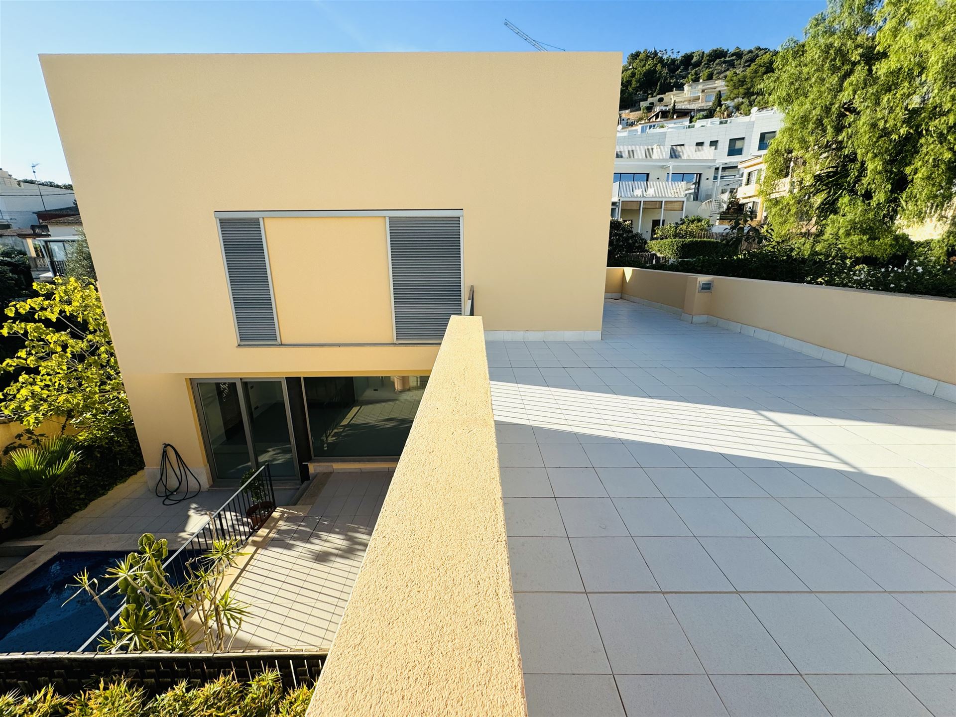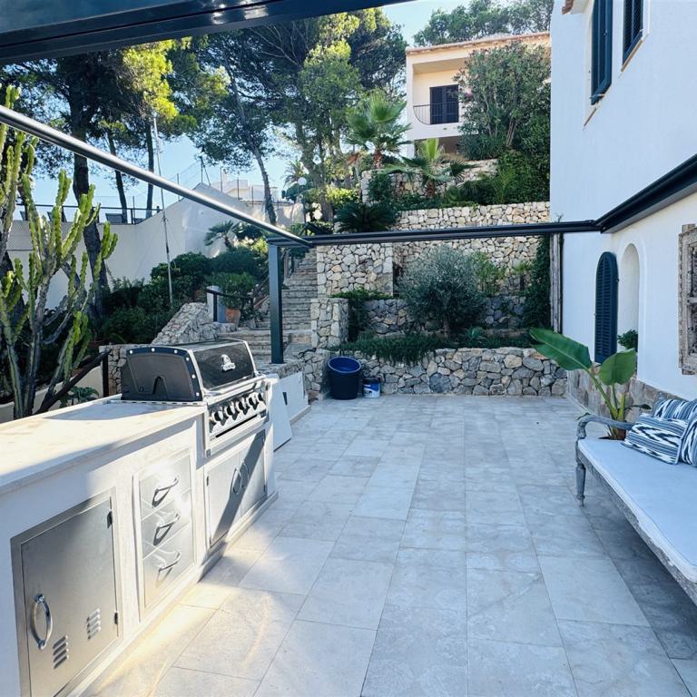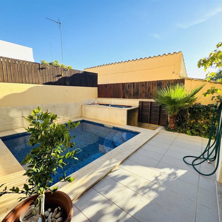modernes Stadthaus mit Blick in die Bucht von Palma, nur 3,5 km von Palma entfernt, 328 qm Grundstück, 264 qm Wohnfl. auf 2 Ebenen (Erdgeschoss, 1. OG), 4 Terrassen mit Blick bis Palma, 3 SZ, 3 B, Gäste WC, großer Wohnraum mit Kamin, offene Küche, Wirtschaftsraum, Klima, Gaszentralheizung, Carport, Pool (3x3), 36 qm Garage, ruhige Lage, BJ 2008, Warmwasser über Solar, sehr gepflegter Zustand