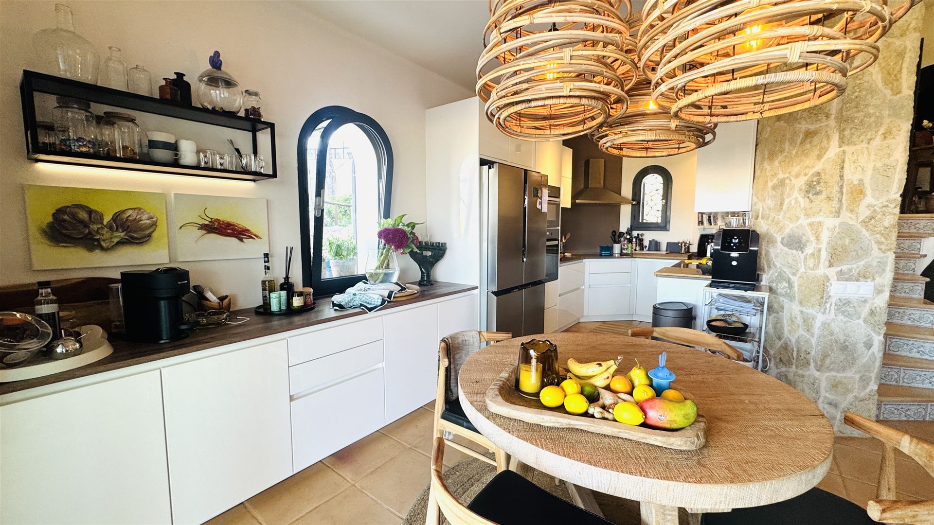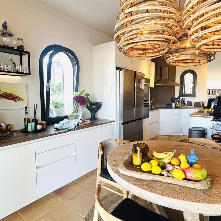 neu renoviertes Haus was fußläufig zum Meer liegt, 500 qm Grundstück, 120 qm Wohnfl., mehrere Terrassen, 2 SZ, 2 Bäder ( 1 davon en suite), geräumiges Wohnzimmer mit Kamin, offene Einbauküche, Klima, Gaszentralheizung, Garten