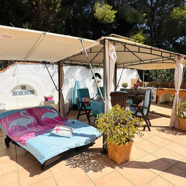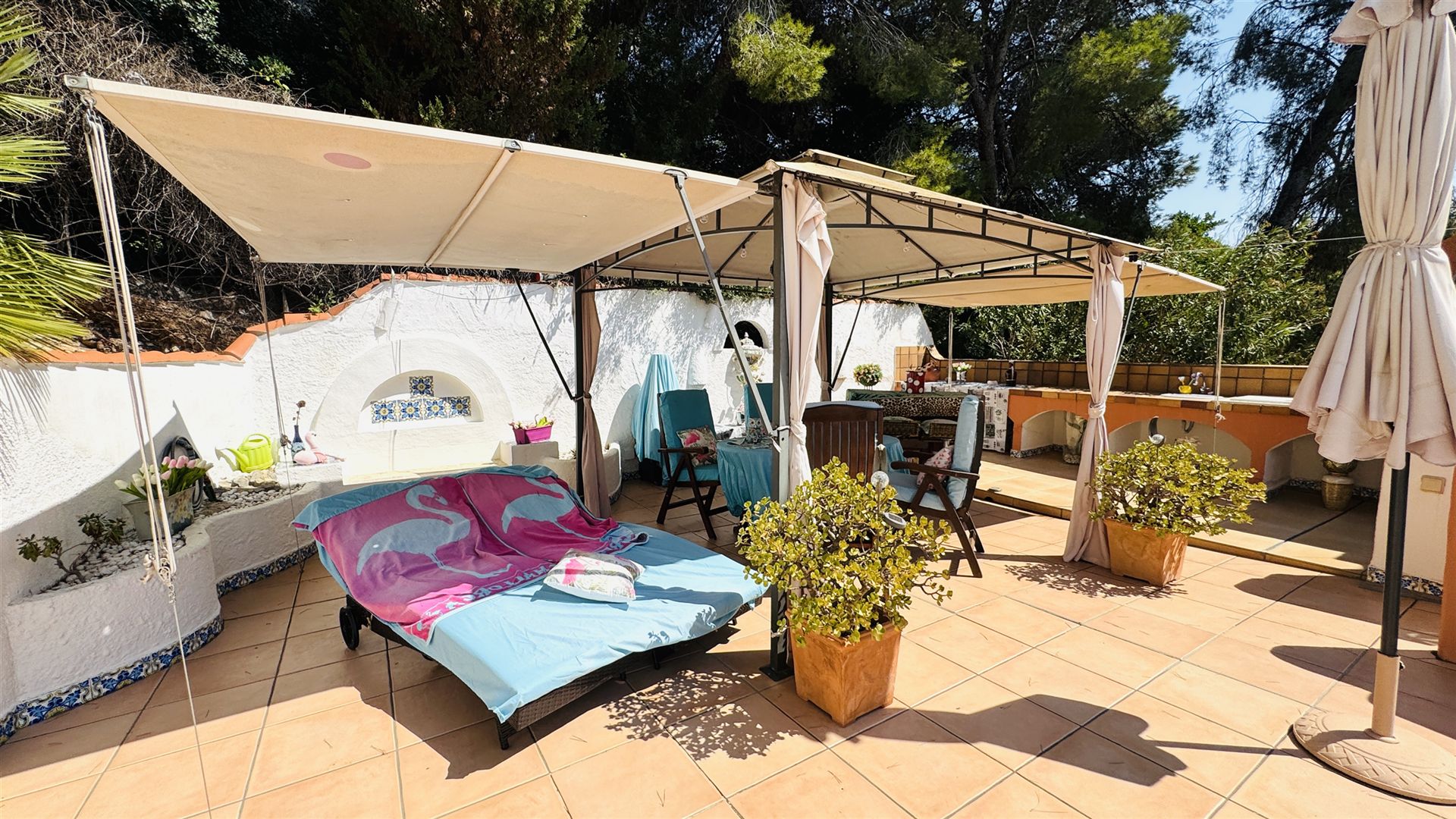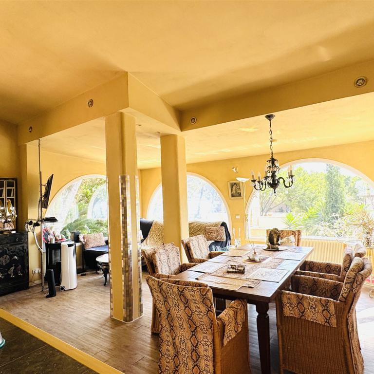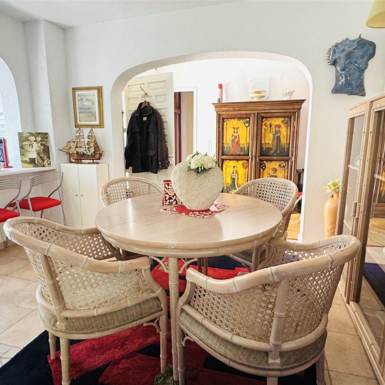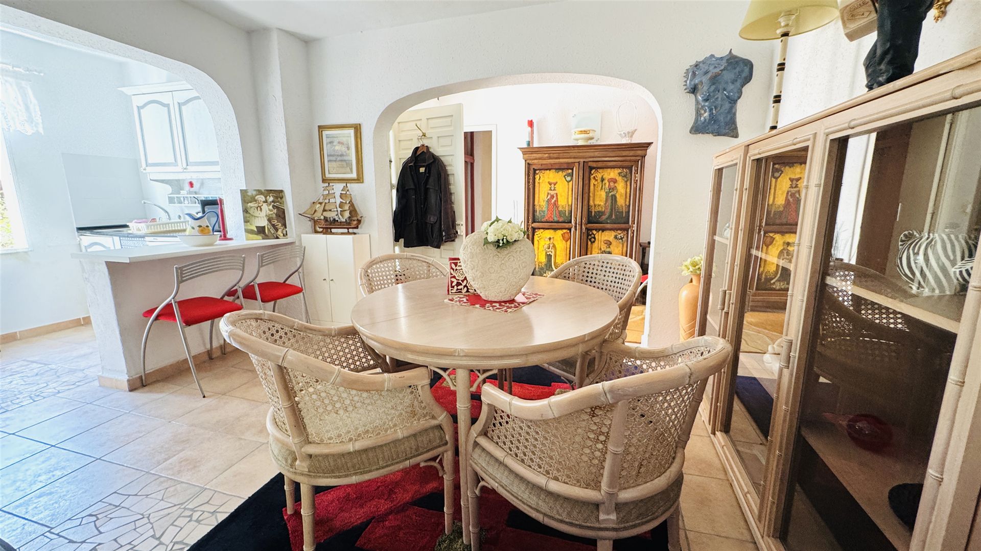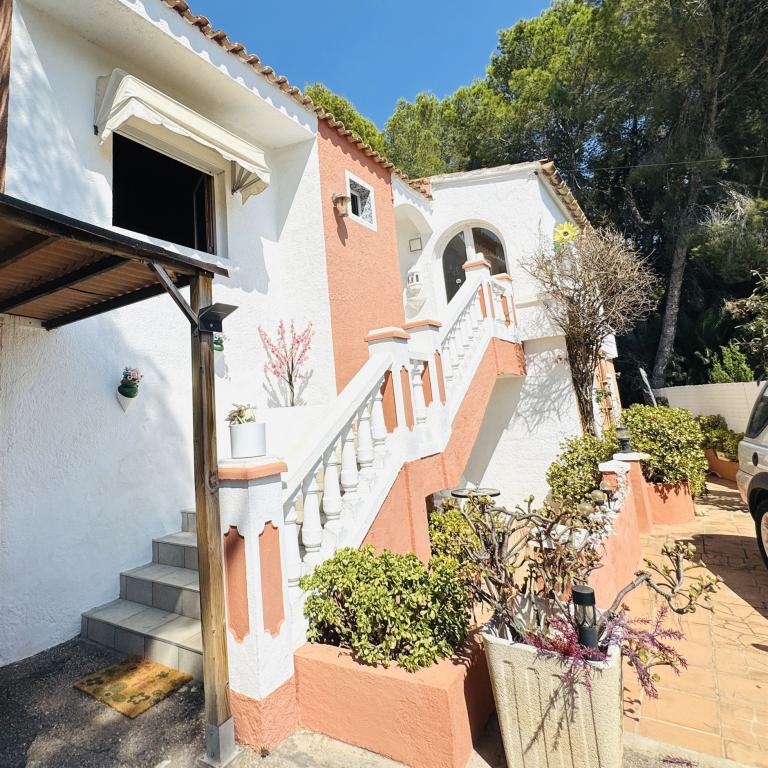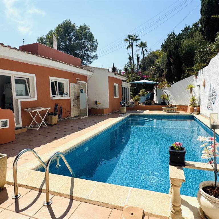 mediterrane Villa mit Pool in ruhiger Residentenzone, 800 qm Grundstück, 210 qm Wohnfläche auf 2 Ebenen, 4 SZ, 3 Bäder, WohnEsszimmer, Einbauküche mit Theke, Wirtschaftsraum, mehrere Terrassen, Elektroheizung, Carport, 4 Stellplätze, Garten, fußläufig zum Meer, Dachterrasse mit Fernmeerblick
